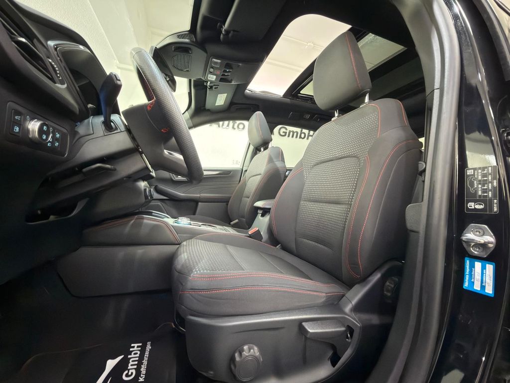 Akustischer Fußgängerschutz (Außensound, AVAS), Ambiente-Beleuchtung vorn (LED), Antischlupfregelung (ASR), Audio-Navigationssystem Ford mit AppLink, Außenspiegel elektr. anklappbar, Außenspiegel elektr. verstell- und heizbar, Body-Styling-Paket, Bordcomputer, Dachhimmel Stoff, dunkel, Dachreling schwarz, Dachspoiler Wagenfarbe, Doppelendrohr Auspuffanlage, Eco-Anzeige für verbrauchsoptimiertes Fahren (EcoCoach), Elektromotor 97 kW (Hybridantrieb), Fahrassistenz-System: Notbrems-Assistent, Fahrassistenz-System: Post-Collision-System, Fahrassistenz-System: Pre-Collision-System, Fahrassistenz-System: Spurhalteassistent, Fensterheber elektrisch vorn + hinten mit Komfortschließung, FordPass Connect inkl. eCall, Fußmatten ST-Design, Gepäckraumabdeckung / Rollo, Getriebe Automatik stufenlos - ECVT, Heckleuchten LED, Hybrid 165 kW (Motor 2,5 Ltr. - 112 kW), Induktionsladeschale für mobile Endgeräte, Innenspiegel mit Abblendautomatik, Intelligent Protection System (IPS), Isofix-Aufnahmen für Kindersitz, Karosserie: 5-türig, Klimaautomatik 2-Zonen, Kombiinstrument Digitalanzeige 12,3 Zoll, Kopfstützen vorn 4-fach verstellbar, Lackierung Blazer-Blau uni, Ladekabel mit Schukostecker, Lenkrad (Sport/Leder, ST), Lenksäule (Lenkrad) höhen-/längsverstellbar, LM-Felgen, My Key (2. Fahrzeugschlüssel programmierbar), Parkbremse elektrisch mit Auto-Hold-Funktion, Parkpilotsystem vorn und hinten, Radstand 2710 mm, Reifen-Reparaturkit, Reifendruck-Kontrollsystem, Rücksitzlehne geteilt, Rücksitzlehne klappbar, Schadstoffarm nach Abgasnorm Euro 6d, Schalt-/Wählhebelgriff Aluminium, Scheibenrahmen schwarz, Scheinwerfer mit Ausschaltverzögerung, Scheinwerfer-Assistent mit Tag-/Nachtsensor, Sitz vorn links verstellbar (8-fach), Sitz vorn rechts verstellbar (8-fach), Sitzheizung vorn, Sonnenblende links mit Spiegel (beleuchtet), Sonnenblende rechts mit Spiegel (beleuchtet), Spezialausführung 2, Sport-Fahrwerk, Sportsitze