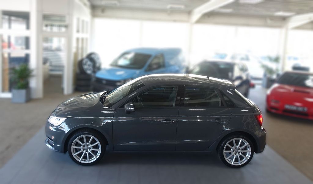 Ausstattungs-Paket: S line Sport-Paket / Plus [Aluminium-Gussräder Audi Sport im 10-Speichen-Design, Größe 7,5 J × 17 mit Reifen 215/40 R 17 (CP4); S line-Sportfahrwerk mit dynamischer Fahrwerksabstimmung; Einstiegsleistenmit Aluminiumeinlage mit S line-Schriftzug; S line-Emblem auf den vorderen Kotflügeln; Innenraum, Armaturentafel und Dachhimmel in Schwarz mit Kontrastnähten auf Sitzbezügen, Sportlederlenkrad, Schalt- bzw. Wählhebelmanschette, Handbremsgriff sowie an Fußmatten; S line-Sportlederlenkrad im 3-Speichen-Design in Leder schwarz (Lenkradgriffe in perforiertem Leder) mit S line-Emblem; Schalt- bzw. Wahlhebelknauf in perforiertem Leder schwarz; Ausströmermanschetten in Hochglanz schwarz; Aluminiumoptik Interieur; LED-Innenlichtpaket; Pedalkappen in Edelstahl], Sitzbezug / Polsterung: Alcantara / Leder mit Logo-Prägung in Vordersitzlehnen, Multi-Media-Interface MMI Navigation, Außenspiegel elektr. verstell-, heiz- und anklappbar, Außenspiegel Wagenfarbe, Diebstahlsicherung für Räder (Felgenschlösser), Einparkhilfe vorn und hinten optisch (APS Plus), Gepäckraum-Paket, Klimaautomatik, Media-Paket, Metallic-Lackierung, Navigations-Paket, Connectivity-Paket (Audi music interface,