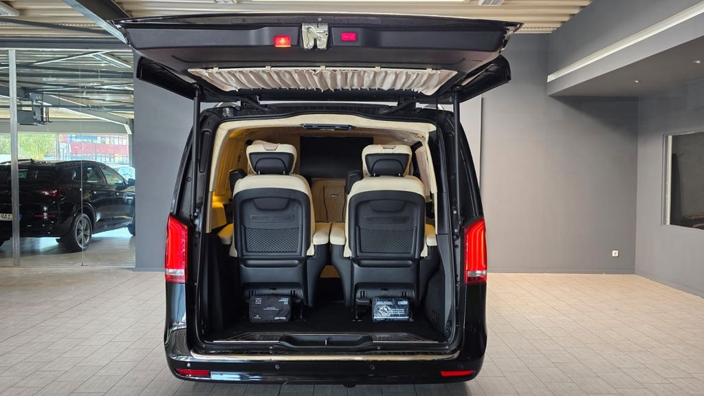 Ablagenetz an Fondsitzlehnen, Akustik-Paket, Ambiente-Beleuchtung Armaturentafel, Dachreling, Fahrassistenz-System: aktiver Bremsassistent, Fahrassistenz-System: Verkehrszeichenerkennung, Fahrwerks-Dämpfungssystem Agility Control, Heckklappe mit automatischem Öffnungs- und Schließsystem, Hold-Funktion, Innenausstattung: Zierteile Carbon-Optik, Innenraumlicht-Paket, Komfort-Klimaautomatik Thermotronik, Kopf-Airbag-System (Windowbag) hinten, Kraftstofftank: vergrößert, Lastenverankerung / Verzurrösen, Multimediasystem MBUX (Touchscreen 10,25"), Navigationssystem für Multimediasystem MBUX, Navigationssystem Plus für Multimediasystem MBUX, Schiebetür links elektrisch, Schiebetür rechts elektrisch, Sitze im Fahrerhaus: Beifahrersitz Komfort, drehbar, 2 Armlehnen, Sitze im Fahrerhaus: Fahrersitz Komfort, drehbar, 2 Armlehnen, Smartphone-Integration (Apple CarPlay und Android Auto), Vorbereitung Navigationssystem (für Multimediasystem MBUX), Wagenheber