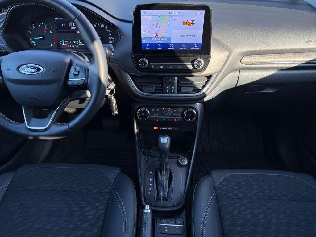 Ambiente-Beleuchtung vorn (LED), Antischlupfregelung (ASR), Audio-Navigationssystem Ford mit AppLink, Außenspiegel elektr. anklappbar, Außenspiegel elektr. verstell- und heizbar, Bordcomputer, Dachhimmel Stoff, Eco-Anzeige für verbrauchsoptimiertes Fahren (EcoCoach), Einparkhilfe hinten, Fahrassistenz-System: Berganfahr-Assistent (Hill-Holder), Fahrassistenz-System: Falschfahrer-Warnfunktion, Fahrassistenz-System: Fernlichtassistent (Scheinwerfer mit Abblendautomatik), Fahrassistenz-System: Notbrems-Assistent, Fahrassistenz-System: Post-Collision-System, Fahrassistenz-System: Pre-Collision-System, Fahrassistenz-System: Spurhalteassistent mit Müdigkeitserkennungs-Sensor, Fahrassistenz-System: Verkehrsschildassistent, Fensterheber elektrisch vorn + hinten mit Komfortschließung, FordPass Connect inkl. eCall, Fußmatten Teppich, Getriebe 7-Gang - Doppelkupplungsgetriebe, Heckleuchten LED, Innenraumfilter: Staub- und Pollenfilter, Intelligent Protection System (IPS), Intelligenter Geschwindigkeits-Begrenzer, Isofix-Aufnahmen für Kindersitz, Karosserie: 5-türig, Komfort-Paket, Kopfstützen hinten mechan. verstellbar (3 Stück), Laderaumboden variabel (Ford Megabox), Lendenwirbelstütze Sitz vorn links, Lenksäule (Lenkrad) höhen-/längsverstellbar, LM-Felgen, Mild-Hybrid 114 kW (Motor 1,0 Ltr. - 114 kW EcoBoost), My Key (2. Fahrzeugschlüssel programmierbar), Nebelscheinwerfer LED, Otto-Partikelfilter (OPF), Radstand 2588 mm, Reifen-Reparaturkit, Reifendruck-Kontrollsystem, Rücksitzlehne geteilt/klappbar (60:40), Schadstoffarm nach Abgasnorm Euro 6d, Scheinwerfer LED, Scheinwerfer-Assistent mit Tag-/Nachtsensor, Sitze vorn höhenverstellbar, Sonnenblende links mit Spiegel (beleuchtet), Sonnenblende rechts mit Spiegel (beleuchtet), Sportsitze vorn, Start/Stop-Anlage, Türgriffe außen Wagenfarbe, Verglasung hinten abgedunkelt (Privacy Glass)