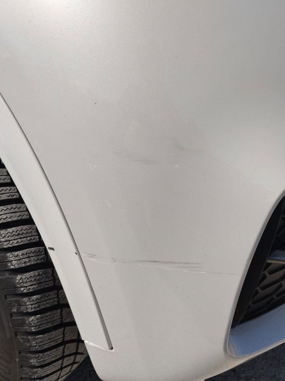 Das Fahrzeug hat eine kleine Delle an der Heckklappe und Kratzer an der Stoßstange vorne rechts.
