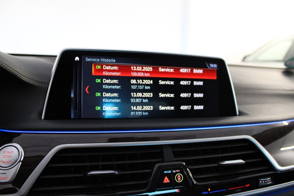 Sonderausstattung:Aktive Sitzbelüftung hinten, Aktive Sitzbelüftung vorn, Ambient Air-Paket, Außenausstattung: Design Pure Excellence, DAB-Tuner (Radioempfang digital), Fahrassistenz-System: Parken ferngesteuert (mit Display-Key), Fahrwerkssystem: Executive Drive Pro (Wankstabilisierung), Fond-Entertainment-System Experience (2 Monitore, Blu-Ray, HDMI), Frontscheibe (Ausführung: Klimakomfort), Fzg. ohne Modell-Schriftzug, Innenausstattung: Edelholz Esche, Innovations-Paket, Instrumententafel lederbezogen, Klimaautomatik 4-Zonen mit autom. Umluft-Control, Komfortsitze vorn elektr. verstellbar (mit Memory), Leseleuchten im Fond BMW Individual, LM-Felgen 8,5x19 (V-Speiche 620), LM-Felgen vorn/hinten: 8,5x19 / 9,5x19 (V-Speiche 620), Metallic-Lackierung, Schiebe-/Hebedach elektrisch (Glas), Service-System: Online Entertainment, Sitzbezug / Polsterung: Exklusiv-Leder Nappa (erweiterter Umfang), Sitze hinten mit Massagefunktion, Sonnenschutzrollo Heckscheibe und Seitenscheiben elektr., Sonnenschutzverglasung (hinten abgedunkelt), Sound-System Bowers & Wilkins, Standheizung, Surround-Kamerasystem (Surround View), Telefon hinten, TV-Funktion bei Navigationssystem, Wärme-Komfort-Paket