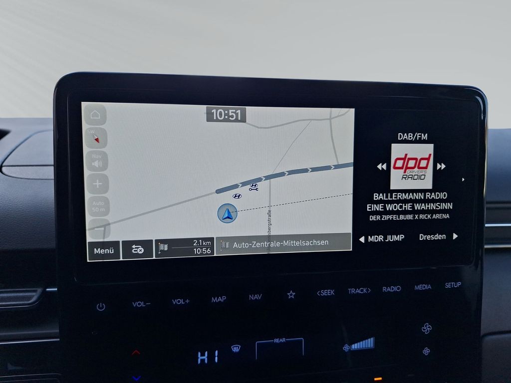 - Entertainment: Navigationssystem, Kommunikationspaket, Radio, Telefonvorbereitung, USB-Anschluss, MP3, Bluetooth, Freisprecheinrichtung, Apple CarPlay, Android Auto, Sprachsteuerung, DAB, Touchscreen, Induktionsladen für Smartphones