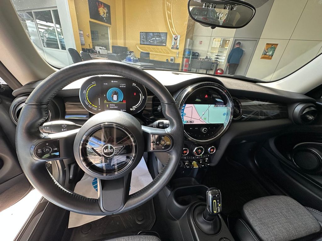 Airbag Fahrer-/Beifahrerseite, Akustischer Fußgängerschutz (Außensound), Ambiente-Beleuchtung, Aufladesystem Gleichstrom (DC), Aufladesystem Wechselstrom (AC), Ausstattungs-Paket: Connected Navigation, Autom. Begleitfunktion der Beleuchtung (Follow me home), Außenspiegel elektr. verstellbar, Bordcomputer, Bremsassistent, Classic Trim, DAB-Tuner (Radioempfang digital), Dach + Außenspiegel Weiß lackiert, Dach weiß lackiert, Dachhimmel Satellite Grey, Dachspoiler, Dynamische Bremsleuchte, Elektromotor 135 kW (cont. 75 kW), Elektron. Bremskraftverteiler, Freisprecheinrichtung Bluetooth mit USB-/Audio-Schnittstelle, Fußmatten Velours, Getränkehalter vorn und hinten, Heckspoiler, HV-Batterie 32,6 kWh, Innenausstattung: Interieur-Oberfläche Piano Black, Instrumentenanzeige, multifunktional, Isofix-Aufnahmen für Kindersitz, Karosserie: 3-türig, Klimaautomatik 2-Zonen mit autom. Umluft-Control, Kopf-Airbag-System hinten, Kopf-Airbag-System vorn, Kurvenbremskontrolle (Corner-Brake-Control, CBC), Ladekabel mit Schukostecker (Mode 2), Ladekabel mit Typ 2-Stecker (Mode 3), Lenkrad (Sport/Leder) mit Multifunktion, Lenksäule (Lenkrad) mechan. verstellbar, Metallic-Lackierung British-Racing Green, MINI Driving Modes, Modellpflege (2), Navigationssystem, Personalisierungssystem (Personal Profile), Rücksitzlehne geteilt/klappbar, Scheibenwaschdüsen und Außenspiegel beheizt, Seitenairbag vorn, Service-System: Intelligenter Notruf inkl. TeleServices, Service-System: Real Time Traffic Information (RTTI), Sitz vorn rechts höhenverstellbar, Sitzbezug / Polsterung: Stoff/Kunstleder-Kombination Black Pearl, Sitze vorn mechanisch verstellbar, Sportsitze vorn, Türgriffe innen verchromt, USB-Schnittstelle, Verzurrösen Koffer-/Laderaum, Sitzheizung vorn, Ambiente-Beleuchtung