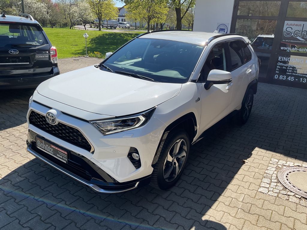 Weitere Ausstattung:Ablagetasche an Beifahrersitzlehne, Airbag Beifahrerseite abschaltbar, Airbag Fahrer-/Beifahrerseite, Akustischer Fußgängerschutz (Außensound, AVAS), Anhänger-Stabilisierungs-Programm (TSC), Audiosystem: Multimedia Toyota Touch mit Rückfahrkamera, Autom. Begleitfunktion der Beleuchtung (Follow me home, FMH), Außenspiegel elektr. anklappbar, Außenspiegel elektr. verstell- und heizbar, Blinkleuchte in Außenspiegel integriert, Bremsassistent, DAB-Tuner (Radioempfang digital), Dachreling, Einparkhilfe vorn und hinten, Elektromotor VA 134 kW / HA 40 kW (Hybridantrieb), Fahrassistenz-System: Berganfahrkontrolle (HAC), Fensterheber elektrisch vorn + hinten, Heckleuchten LED, HV-Batterie (Lithium-Ionen), Innenspiegel mit Abblendautomatik, Isofix-Kindersitz-System, Karosserie: 5-türig, Klimaautomatik 2-Zonen, Knieairbag Fahrerseite, Kopf-Airbag-System, Kopf-Airbag-System 2.Sitzreihe, Kopfstützen vorn und hinten verstellbar, Lendenwirbelstütze Sitz vorn links, elektr. verstellbar, Lenkrad heizbar, Lenksäule (Lenkrad) verstellbar, LM-Felgen, Mittelarmlehne hinten mit Getränkehalter, Motor 2,5 Ltr. - 136 kW 16V Hybrid, Park-Assistent Intelligent Park Assist, Projektor-Scheinwerfer, Radstand 2690 mm, Reifen-Reparaturkit, Reifendruck-Kontrollsystem, Rücksitz geteilt, Rücksitz klappbar, Rücksitzlehnen neigungsverstellbar, Schadstoffarm nach Abgasnorm Euro 6d, Scheibenwaschdüsen heizbar, Scheibenwischerenteiser vorn, Schleudertrauma-Schutzsystem, Seitenairbag vorn, Sitz vorn links elektr. verstellbar, Sitz vorn links höhenverstellbar, Sitzheizung vorn, Smartphone-Integration x-connect (Apple CarPlay und Android Auto), Steckdose (12V-Anschluß) in Mittelkonsole, Toyota Safety Sense, Türgriffe außen Wagenfarbe, Verglasung hinten abgedunkelt, Warnanlage für Sicherheitsgurte hinten, Warnanlage für Sicherheitsgurte vorn, Wärmeschutzverglasung getönt