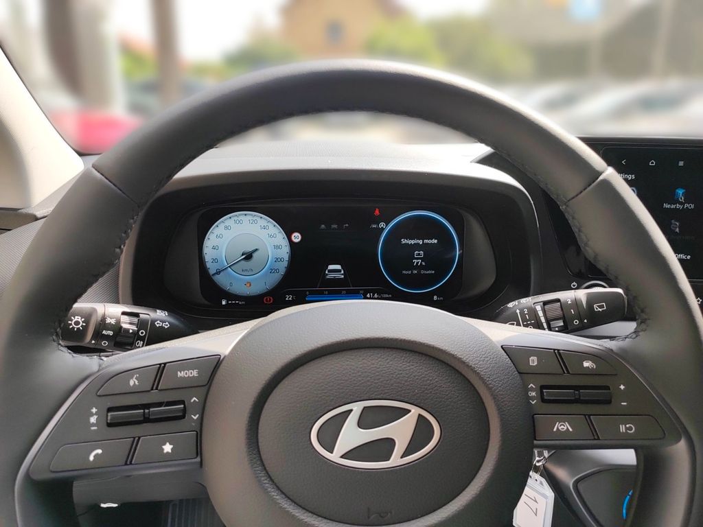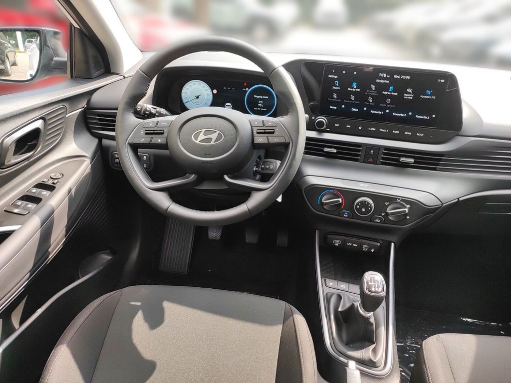 6 Lautsprecher, Airbag Beifahrerseite, Airbag Beifahrerseite abschaltbar, Airbag Fahrerseite, Ambiente-Beleuchtung, Audio-Navigationssystem, Audiosystem: Radio RDS, Außenspiegel elektr. anklappbar, Außenspiegel elektr. verstell- und heizbar, beide, Außenspiegel lackiert, Blinkleuchte in Außenspiegel integriert, Bordcomputer, Dachspoiler, Dachspoiler Wagenfarbe, Einparkhilfe hinten, Einschaltautomatik für Fahrlicht / Lichtsensor, Elektron. Stabilitätskontrolle (ESC) mit Bremsassistent, Fahrassistenz-System: aktiver Spurhalteassistent (LKAS, Lane Keep Assist System), Fahrassistenz-System: Aufmerksamkeits-Assistent, Fahrassistenz-System: Autonome Notbremsfunktion inkl. Frontkollisionswarnung (FCA), Fahrassistenz-System: Berganfahrhilfe, Fahrassistenz-System: Fahrprofilauswahl (Drive Mode), Fahrassistenz-System: Fernlichtassistent, Fahrassistenz-System: Insassenalarm (ROA), Fahrassistenz-System: Multikollisionsbremse (Multi Collision Brake), Fahrassistenz-System: Sicherheitssystem mit automatischem Notruf (ERA GLONASS / eCall), Fahrassistenz-System: Verkehrszeichenerkennung, erweitert (Geschwindigkeits-Regel-/Begrenzeranlage), Fensterheber elektrisch hinten, Freisprecheinrichtung Bluetooth, Funktions-Paket, Gepäck-/Laderaumleuchte, Gepäckraumabdeckung / Rollo, Getriebe 7-Gang - Doppelkupplungsgetriebe DCT, Gurtstraffer, Heckscheibe heizbar, Induktionsladeschale für Smartphone, Karosserie: 5-türig, Kopf-Airbag-System, Kopfstützen hinten verstellbar, Kühlergrill schwarz (glanzlackiert), Lenkrad heizbar, Lenksäule (Lenkrad) höhenverstellbar, Lenksäule (Lenkrad) längsverstellbar, LM-Felgen, Modellpflege, Motor 1,0 Ltr. - 74 kW TGDI KAT, Otto-Partikelfilter (OPF), Radioempfang digital (DAB+), Reifen-Reparaturkit, Reifendruck-Kontrollsystem, Rückfahrkamera, Rücksitzlehne geteilt/klappbar, Schadstoffarm nach Abgasnorm Euro 6e, Seitenairbag vorn, Service-System: Remote Services (Blue Link), Sicherheitsgurte vorn höhenverstellbar, Sitz vorn links höhenverstellbar, Sitzbezug / Polsterung: Stoff, Sitzheizung vorn, Sonnenblenden mit Spiegel (beleuchtet), Start/Stop-Anlage, Steckdose (12V-Anschluß) vorn, Türgriffe außen Wagenfarbe, USB-Anschluss (Typ C), USB-Anschluss hinten, USB-Anschluss hinten (Typ C), USB-Anschluss Mittelkonsole, Verglasung getönt, Warnanlage für Sicherheitsgurte, Fahrer-/Beifahrerseite, Wireless SmartLink (Apple CarPlay)