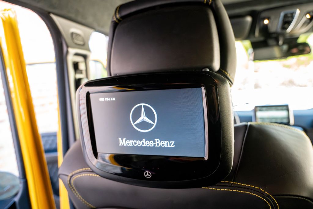 AMG Driver's Package, Ausstattungs-Paket: designo Exklusiv (Leder), Außenspiegel mit Totwinkel-Assistent, DAB-Tuner (Radioempfang digital), Entertainment-System im Fond (2 Bildschirme), Farb-Paket, Felgen-Design: AMG 5-Speichen (Mattschwarz), Feuerlöscher, Getränkehalter hinten, Gummimatten in Fahrgast-/Laderaum, Innenausstattung: Zierteile designo Carbon, Ladungsschutz-Paket, LM-Felgen 9,5x20, Parktronic-System PTS (vorn und hinten), Rückfahrkamera, Schiebe-/Hebedach elektrisch, Seitenscheiben hinten abgedunkelt, Sender für Garagentoröffner (integriert), Sitz-Komfort-Paket, Sonderlackierung AMG solarbeam Yellow Perleffekt, Sound-System Harman-Kardon mit Logic7-Surround-System, TV-Tuner, analog und digital, Vorrüstung Mobiltelefon/Handy / Komfort-Telefonie / LTE-fähig, Zusatzheizung
