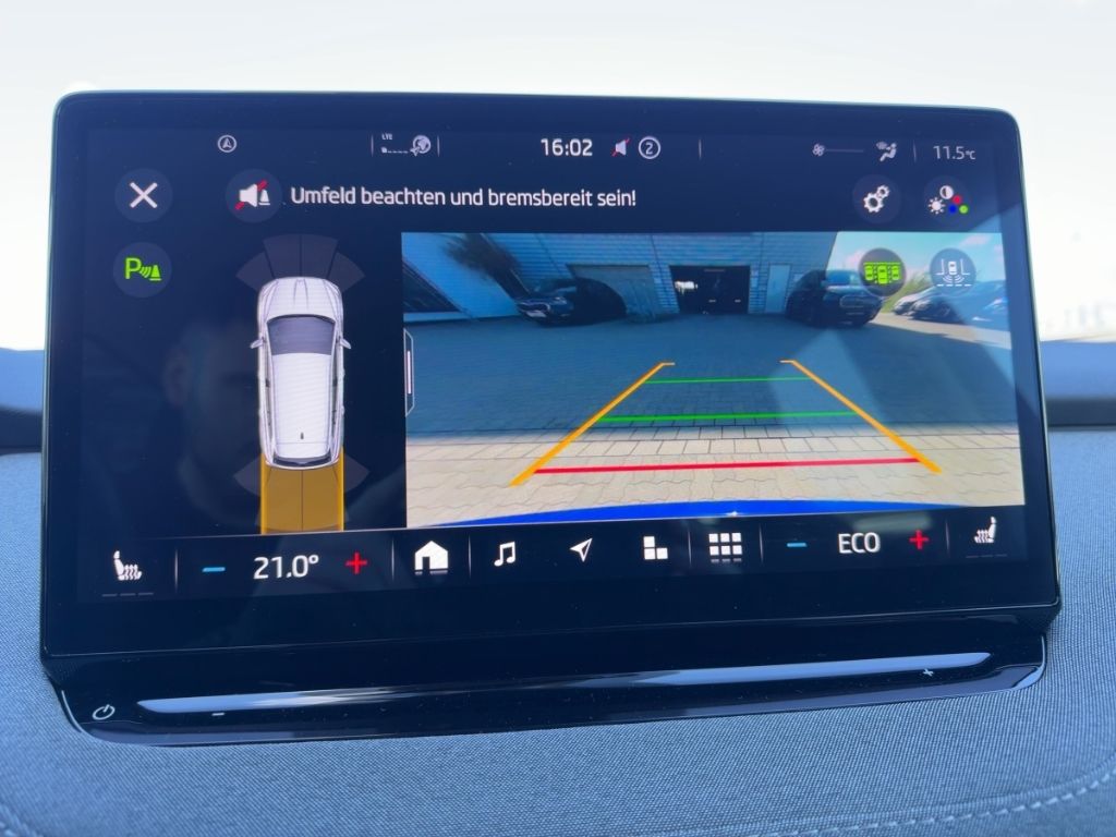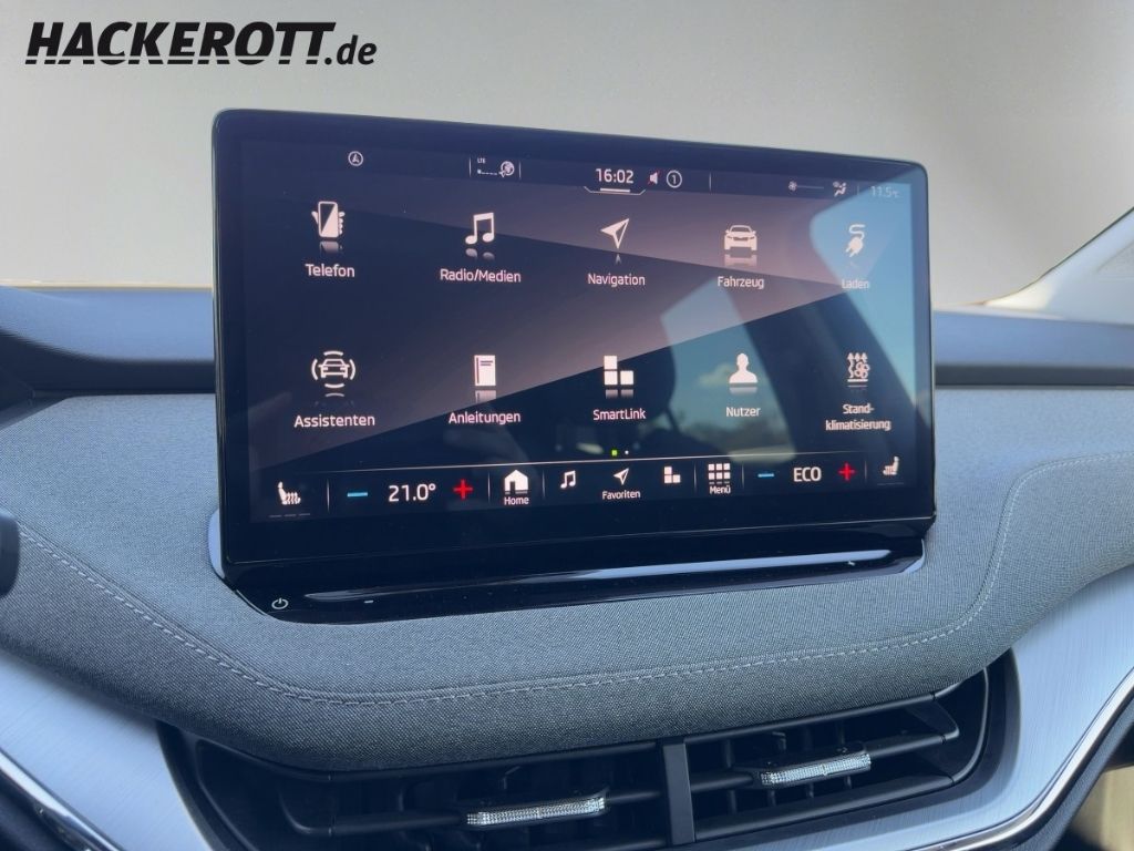 - Weiteres: Anti-Blockier-System (ABS), Tagfahrlicht LED, Seitenairbag vorn, Außenspiegel elektr. verstell- und heizbar, Wegfahrsperre, Kopf-Airbag-System, Servolenkung elektronisch (Servotronic), Zentralverriegelung, Gepäckraumabdeckung / Rollo, Start-Stop-Knopf (Start/Stop-Anlage ohne Schlüssel), Parkbremse elektronisch, SmartLink (Apple CarPlay und Android Auto), Ambiente-Beleuchtung LED, USB-Ladeanschlüsse für 2.Sitzreihe, 12V-Steckdose im Laderaum, Abbiegebremsfunktion und Ausweichunterstützung, Akustikglas Türscheiben vorn, Akustischer Fußgängerschutz, Außensound (e-sound), Ausstattungs-Paket: Clever inkl. Diebstahl-Warnanlage, Ausstattungs-Paket: Family, Autom. Distanzregelung (pACC) mit vorausschauender Geschw.-Regelung, Automatische Distanzregelung (ACC), Beifahrerairbag abschaltbar, Berg-Anfahr-Assistent (Hill-Holder), Chrom-Paket, Climatronic 3-Zonen, Convenience-Paket Basic, Dachhimmel grau, Diebstahl-Warnanlage mit Innenraumüberwachung und Abschleppschutz, DRIVE-Paket, Elektron. Stabilitäts-Programm, Fahrassistenz-Paket, Fahrprofilauswahl, Fensterheber elektrisch vorn und hinten, Freisprechanlage Bluetooth, Frontkamera, Frontradar mit City-Notbremsfunktion, Heckscheibenwischer, Insassen-Schutzsystem proaktiv, Isofix-Aufnahmen für Kindersitz am Beifahrersitz, Kennzeichenbeleuchtung LED, Kindersicherung elektr. betätigt, Klima-Paket, Kombiinstrument digital (virtual cockpit), Komfortsitze vorn, LED Fußraumbeleuchtung, Lederlenkrad heizbar mit Schaltfunktion, Lendenwirbelstütze, Lendenwirbelstütze vorn links, Lenksäule höhen-/längsverstellbar, Müdigkeitserkennung, Multikollisionsbremse, Phonebox, Radioempfang digital (DAB+), Scheibenwaschdüsen heizbar, Schließ -/ Startsystem Kessy, Schnellladevorrichtung (CCS-Ladedose), Seitenscheiben hinten und Heckscheibe abgedunkelt, Sitzhöhenverstellung Fahrersitz