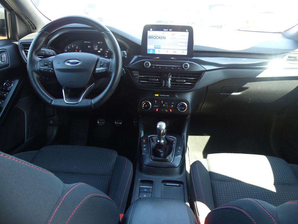 Airbag Beifahrerseite abschaltbar, Antischlupfregelung (ASR), Audio-Navigationssystem Ford mit AppLink, Außenspiegel elektr. anklappbar, Außenspiegel elektr. verstell- und heizbar, Blinkleuchte in Außenspiegel integriert, Body-Styling-Paket, Bord-/Verbrauchscomputer, Dachhimmel Stoff, dunkel, Dachreling schwarz, Dachspoiler Wagenfarbe, Dimmer Instrumentenbeleuchtung, Doppelendrohr Auspuffanlage, Elektr. Bremskraftverteilung (EBD), Fahrassistenz-System: Berganfahr-Assistent (Hill-Holder), Fahrassistenz-System: Notbrems-Assistent, Fahrassistenz-System: Post-Collision-System, Fahrassistenz-System: Pre-Collision-System, Fahrassistenz-System: Spurhalteassistent, Farbdisplay für Bordcomputer, Fensterheber elektrisch vorn + hinten mit Komfortschließung, FordPass Connect inkl. eCall, Fußmatten Velours - vorn, Gepäckraumabdeckung / Rollo, Getriebe 6-Gang - Typ: 6MX65, Innenraumfilter: Staub- und Pollenfilter, Intelligent Protection System (IPS), Intelligenter Geschwindigkeits-Begrenzer, Isofix-Aufnahmen für Kindersitz, Karosserie: 5-türig, Kopfstützen hinten mechan. verstellbar (3 Stück), Kopfstützen vorn 4-fach verstellbar, Laderaumboden verstellbar, Lenkrad (Sport/Leder, ST), Lenksäule (Lenkrad) höhen-/längsverstellbar, LM-Felgen, Mittelkonsole Premium, Motor 1,0 Ltr. - 92 kW EcoBoost KAT, My Key (2. Fahrzeugschlüssel programmierbar), Nebelscheinwerfer LED, Nebelscheinwerfer mit statischem Abbiegelicht, Otto-Partikelfilter (OPF), Parkbremse elektrisch mit Auto-Hold-Funktion, Parkpilotsystem vorn und hinten, Pedale Aluminium, Reifendruck-Kontrollsystem, Reserverad als Notrad, Rücksitzlehne geteilt/klappbar (60:40), Schadstoffarm nach Abgasnorm Euro 6d-TEMP, Schalt-/Wählhebelgriff Aluminium, Schaltpunktanzeige, Scheinwerfer mit abgedunkelten Hintergrund, Scheinwerfer-Assistent mit Tag-/Nachtsensor, Sitz vorn links höhenverstellbar, Sonnenblende links mit Spiegel, Sonnenblende rechts mit Spiegel, Sport-Fahrwerk, Sportsitze vorn, Start/Stop-Anlage, Steckdose (12V-Anschluß) im Koffer-/Laderaum, Verglasung getönt, Warnanlage für Sicherheitsgurte hinten, Warnanlage für Sicherheitsgurte vorn, Zylinderabschaltung