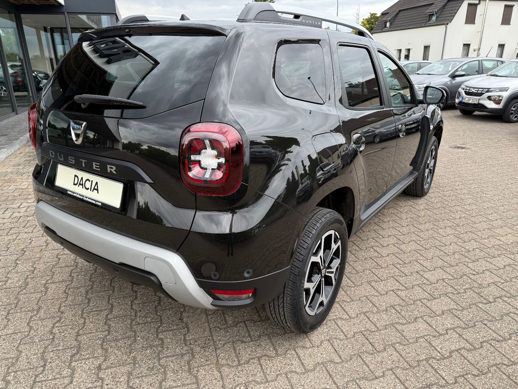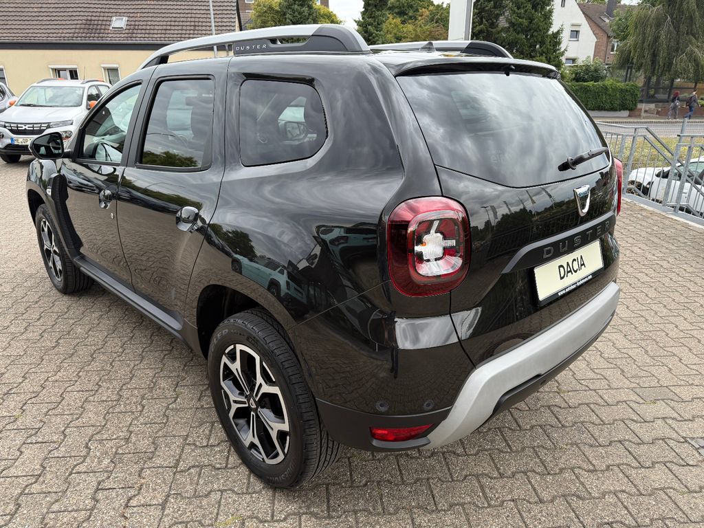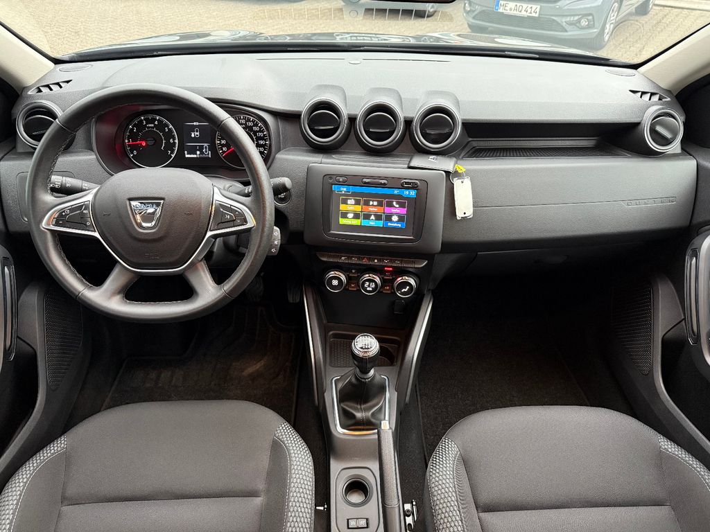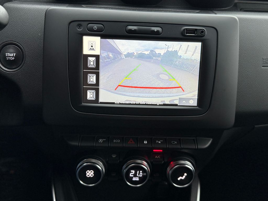 Dieser gepflegte Dacia Duster aus 2020 präsentiert sich in elegantem Schwarz-Metallic und bietet ein hervorragendes Preis-Leistungs-Verhältnis im SUV-Segment. Der Fronttriebler wird von einem sparsamen 1.3-Liter-Benzinmotor mit 150 PS angetrieben und erfüllt die Euro-6d-TEMP-Abgasnorm. Mit nur einem Vorbesitzer und lückenloser Servicehistorie ist dieser Duster ein zuverlässiger Begleiter für Stadt und Land. Die Ausstattung umfasst ein modernes Infotainmentsystem mit Touchscreen, Apple CarPlay, Android Auto und Navigationssystem. Für zusätzlichen Komfort sorgen die automatische Klimaanlage, Sitzheizung, Lichtautomatik und das Keyless-Entry-System. Besonders praktisch: Die 360-Grad-Kamera und Parksensoren vorne und hinten erleichtern das Rangieren erheblich.- Kraftvoller 1.3-Liter-Benzinmotor mit 150 PS und manuellem Getriebe
