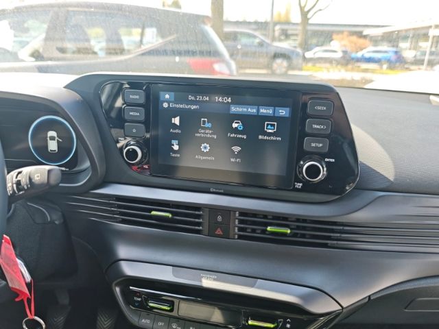- Weiteres: BORDCOMPUTER, Reifendruck-Kontrollsystem, Geschwindigkeits-Regelanlage (Tempomat), Schalt-/Wählhebelgriff Leder, Rückfahrkamera, Reifen-Reparaturkit, Verglasung getönt, Außenspiegel elektr. verstell- und heizbar, beide, Ambiente-Beleuchtung, Dachspoiler, Einparkhilfe hinten, Scheibenwischer mit Regensensor, Schadstoffarm nach Abgasnorm Euro 6d, Touchscreen-Farbdisplay (8,0 Zoll), Getriebe 6-Gang - mit automatisierter Kupplung (iMT), Fahrassistenz-System: Insassenalarm (Rear Occopant Alert, ROA), 6 Lautsprecher, Audiosystem: Radio RDS, Scheinwerfer LED, Heckleuchten LED, LM-Felgen, Anti-Blockier-System (ABS), Tagfahrlicht LED, Fensterheber elektrisch vorn, Lenksäule (Lenkrad) höhenverstellbar, Seitenairbag vorn, Servolenkung, Wegfahrsperre (elektronisch), Kopf-Airbag-System, Gepäckraumabdeckung / Rollo, Rücksitzlehne geteilt/klappbar, Airbag Beifahrerseite, Airbag Fahrerseite, USB-Anschluss + AUX-IN-Anschluss, USB-Anschluss Mittelkonsole, USB-Anschluss hinten, Wireless SmartLink (Apple CarPlay), Metallic-Lackierung, Nebelscheinwerfer, Abbiegelicht, aktiver Spurhalteassistent (LKAS, Lane Keep Assist System), Audiosystem mit Hochtönern, Aufmerksamkeits-Assistent, Außenspiegel lackiert, Autonome Notbremsfunktion inkl. Abbiegefunktion (FCA-JT), Autonome Notbremsfunktion inkl. Fahrradfahrererkennung (FCA-Cyc.), Autonome Notbremsfunktion inkl. Frontkollisionswarnung (FCA), Autonome Notbremsfunktion inkl. Fußgängererkennung (FCA-Ped.), Beifahrerairbag abschaltbar, Berganfahrhilfe, Blinkleuchte in Außenspiegel integriert, Bremsassistent, Drive-Mode Auswahl, Einschaltautomatik für Fahrlicht / Lichtsensor, Elektr. Bremskraftverteilung, elektr. Fensterheber mit Einklemmschutz, Elektron. Stabilitätskontrolle (ESC) mit Bremsassistent, Fensterheber elektrisch vorn und hinten, Fernlichtassistent, Freisprechanlage Bluetooth, Funktions-Paket, Gegenlenkunterstützung (Vehicle Stability Management - VSM), Gepäck-/Laderaumleuchte, Getränkehalter vorn, Gurtstraffer, Gurtwarner, Heckscheibe heizbar, Isofix-Aufnahmen für Kindersitz, Klimaautomatik, Kopfstützen hinten, Kühlergrill schwarz glanzlackiert, Lederlenkrad, Lenkrad heizbar, Lenksäule höhen-/längsverstellbar, Leseleuchte, Mild-Hybrid 74 kW (Motor 1,0 Ltr. - 74 kW T-GDI), Mittelarmlehne vorn verschiebbar, Multikollisionsbremse (Multi Collision Brake), Plus-Paket, Radioempfang digital (DAB+), Sicherheitssystem mit automatischem Notruf (ERA GLONASS / eCall), Sitzheizung vorn, Sitzhöhenverstellung Fahrersitz, Start/Stop-Anlage, Türgriffe lackiert, Verkehrszeichenerkennung, erweitert (Geschwindigkeits-Regel-/Begrenzeranlage), ZV mit Fernbedienung