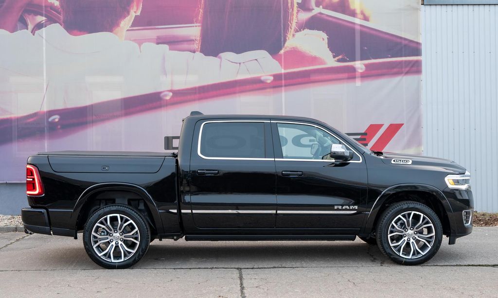 Der neue RAM Tungsten CrewCab MY25 3,0l Hurricane in Diamond Black mit 14,4'' Navigationsystem sowie Digitalen Cockpit, Abstandstempomat, Beifahrerdisplay, Ramboxen, Luftfahrwerk und Panoramadach.