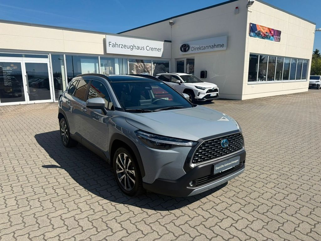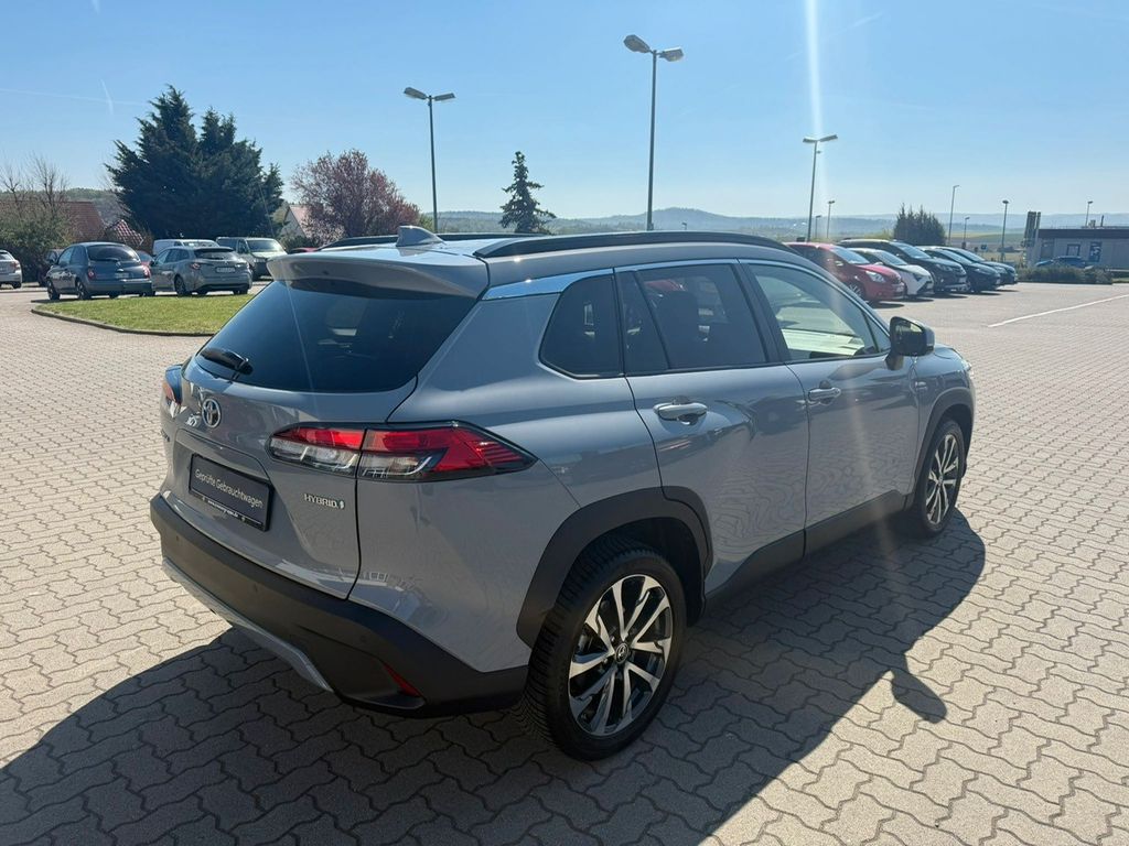 Ablagetasche an Beifahrersitzlehne, Airbag Beifahrerseite abschaltbar, Airbag Fahrer-/Beifahrerseite, Ambiente-Beleuchtung vorn (LED), Anzeigeinstrumente digital, Außenspiegel elektr. anklappbar, Außenspiegel elektr. verstell- und heizbar, Bi-LED-Scheinwerfer, Bluetooth-Schnittstelle, Dachreling, Elektr. Bremskraftverteilung, Elektromotor 83 kW (Hybridantrieb), Fahrassistenz-System: aktiver Spurhalteassistent (Lenkunterstützung), Fahrassistenz-System: Ausstiegswarnung (Safe Exit Assist, SEA), Fahrassistenz-System: Berganfahrkontrolle (HAC), Fahrassistenz-System: Fernlichtassistent (Abblendautomatik Fahrlicht, AHB), Fahrassistenz-System: Kreuzungs-Assistent, Fahrassistenz-System: Pre-Collision-System (PCS), Fahrassistenz-System: Querverkehrs-Assistent Heck (Rear Cross Traffic Alert, RCTA), Fahrassistenz-System: Rückfahr-Assistent mit automatischer Bremsfunktion, Fahrassistenz-System: Sicherheitssystem Toyota Connect mit automatischem Notruf (eCall), Fahrassistenz-System: Spurhalteassistent (LDA), Fahrassistenz-System: Totwinkel-Assistent (BLIS), Fahrassistenz-System: Verkehrszeichenerkennung (RSA), Fensterheber elektrisch vorn + hinten, Freisprechanlage Bluetooth, Heckleuchten LED, Induktionsladeschale für Smartphone, Innenraumfilter: Staub- und Pollenfilter mit Aktivkohlefilter, Innenspiegel mit Abblendautomatik, Isofix-Kindersitz-System, Karosserie: 5-türig, Klimaautomatik 2-Zonen, Knieairbag Fahrerseite, Kopf-Airbag-System, Kopfstützen vorn und hinten verstellbar, Lendenwirbelstütze Sitz vorn links, elektr. verstellbar, Lenkrad (3-Speichen), Lenkrad heizbar, Lenksäule (Lenkrad) verstellbar, LM-Felgen, Motor 2,0 Ltr. - 112 kW (System: 145 kW) 16V Hybrid, Nebelscheinwerfer LED, Parkbremse elektrisch (EPB), Pre-Crash-System und Adaptive Geschwindigkeitsregelanlage, Radstand 2640 mm, Reifen-Reparaturkit, Reifendruck-Kontrollsystem, Rückfahrkamera, Rücksitz geteilt, Rücksitz klappbar, Schadstoffarm nach Abgasnorm Euro 6d, Seitenairbag, Service-System: MyT-Connected Services, Sitzbezug / Polsterung: Stoff, Sitzheizung vorn, Türgriffe außen Wagenfarbe, Universal-Schnittstelle (USB-/ iPod-/ AUX-Anschluss), USB-Anschlüsse (2) für 2.Sitzreihe, Verglasung hinten abgedunkelt, Warnanlage für Sicherheitsgurte hinten, Warnanlage für Sicherheitsgurte vorn