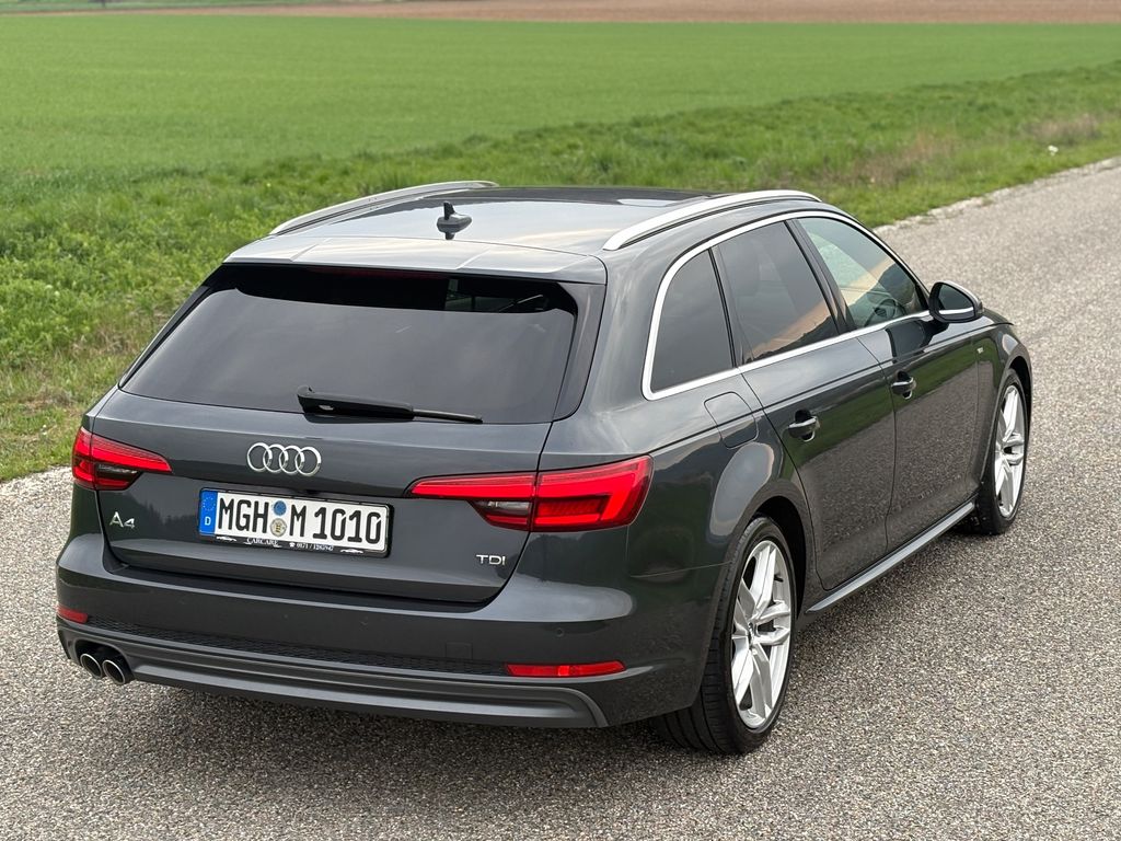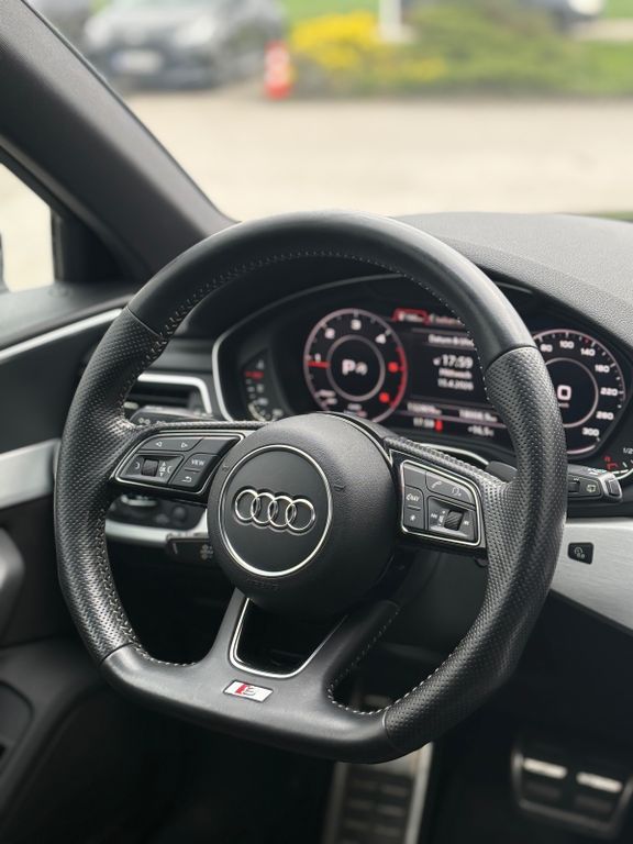 Ablage- und Gepäckraum-Paket, Anhängerkupplung Vorbereitung, Assistenz-Paket Stadt, Audi Smartphone Interface, Ausstattungs-Paket: S line Selection, Ausstattungs-Paket: S line Sport / Plus, Außenspiegel elektr. verstell-, heiz- und anklappbar, Bluetooth-Freisprecheinrichtung mit Spracherkennung (Audi Phone Box), Harnstofftank (SCR): 24 Ltr., Innenspiegel mit Abblendautomatik, Isofix-Aufnahmen für Kindersitz an Beifahrersitz, Kombiinstrument digital (virtual cockpit), Komfort-Klimaautomatik 3-Zonen, Komfortschlüssel mit sensorgesteuerter Heckklappenentriegelung inkl. (öffnen + schliessen), Kraftstofftank: 54 Ltr., Lenkrad (Sport/Leder - 3-Speichen, unten abgeflacht) mit Multifunktion plus, Licht-Paket, LM-Felgen 7x17 (5-Parallelspeichen, für Winterbereifung), LM-Felgen 8x18 (5-Doppelspeichen-Design, mit RS-Schriftzug), Metallic-Lackierung, Multi-Media-Interface MMI Navigation Plus mit MMI Touch, Panoramadach vorn elektrisch, hinten fest, Reserverad als Notrad, Sitzbezug / Polsterung: Alcantara / Leder mit Logo-Prägung in Vordersitzlehnen, Sitze vorn elektr. verstellbar, Sitzheizung vorn, Sound-System DSP / Audi Sound-System, Verglasung hinten abgedunkelt (Privacyverglasung) und Türscheiben vorn Akustikglas, Wagenheber, Airbag Fahrer-/Beifahrerseite, Antriebs-Schlupfregelung (ASR) mit EDS, Audi Drive Select, Außenspiegel asphärisch, links, Außenspiegel asphärisch, rechts, Außenspiegel Wagenfarbe, Blinkleuchten LED in Außenspiegel integriert, Bremsassistent, Dachkantenspoiler, Dachreling eloxiert, Elektron. Differentialsperre (EDS), Fahrassistenz-System: City-Notbremsfunktion (Audi pre sense City), Fahrassistenz-System: Müdigkeitserkennung (Pausenempfehlung), Gepäck-/Laderaumabdeckung elektrisch, Gepäckraum-Abtrennung (Netz), Geschwindigkeits-Begrenzeranlage, Glanz-Paket, Isofix-Aufnahmen für Kindersitz, Karosserie: 4-türig, Kopf-Airbag-System (Sideguard), Ladekantenschutz (Edelstahl), Lendenwirbelstützen vorn, elektr. verstellbar, LM-Felgen, Motor 2,0 Ltr. - 140 kW 16V TDI, Multi-Media-Interface MMI Basic Plus / MMI Radio Plus, Raucher-Paket, Reifenkontroll-Anzeige, Rücksitzlehne geteilt/klappbar, Schadstoffarm nach Abgasnorm Euro 6, Scheibenwaschdüsen heizbar, SCR-System (AdBlue-Technologie), Seitenairbag vorn, Sportsitze vorn, Start/Stop-Anlage, Wendeladeboden (Ladeboden), Wärmeschutzverglasung grün getönt, App-Connect Wireless (Apple CarPlay, Android Auto, MirrorLink), Innenspiegel automatisch abblendend, Sitzheizung vorn