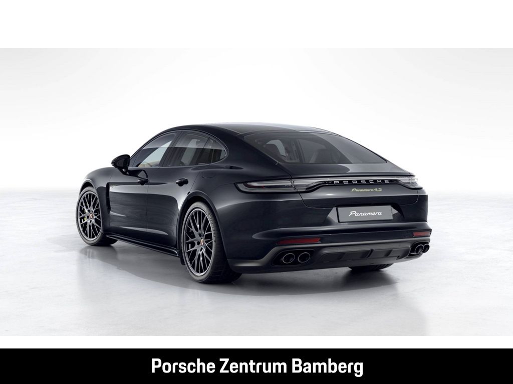 - Weiteres: (3FU) Panorama Dachsystem, (VR4) SportDesign Schwellerverkleidungen, (QJ4) Seitenscheibenleisten in Schwarz (hochglanz), (2W6) Exclusive Design Tankdeckel, (0P9) Sportabgasanlage inklusive Sportendrohren schwarz, (0N5) Hinterachslenkung inklusive Servolenkung Plus, (43U) 21-Zoll Panamera SportDesign Räder lackiert in Tiefschwarzmetallic, (5KA) 4+1 Sitzanlage, (2V4) Ionisator, (QQ2) Ambientebeleuchtung mit fondorientiertem Innenlicht, (Q2J) Komfortsitze vorn (14-Wege, elektrisch) mit Memory-Paket, (4A4) Sitzheizung hinten, (4D5) Massagefunktion vorn inkl. Sitzbelüftung vorn, (4X4) Seiten-Airbags im Fond, (9AH) 4-Zonen-Klimaautomatik, (2PJ) GT-Sportlenkrad inkl. Lenkradheizung, (QE1) Ablagenpaket, (4M1) Cupholderabdeckung vorn, (FI6) Sicherheitsgurte bordeauxrot, (7V2) Zifferblatt Drehzahlmesser bordeauxrot, (5MH) Interieur-Paket Carbon, (7M3) Türeinstiegsblenden Carbon, (9VL) BOSE® Surround Sound-System, (UI2) USB-C Schnittstelle hinten, (KB2) On-Board AC-Lader mit 7,2 kW, (73J) Netzkabel für Industriesteckdose rot (400 V, 16 A, 5 Pin), (8JU) LED-Matrix Hauptscheinwerfer abgedunkelt inkl. Porsche Dynamic Light System Plus (PDLS Plus), (8VQ) Exclusive Design Heckleuchten, (VW6) Geräusch- und Wärmeschutzverglasung inkl. Privacy-Verglasung, (KS1) Head-Up Display, (8A4) ParkAssistent inkl. Surround View, (7Y1) Spurwechselassistent, (8T3) Abstandsregeltempostat, (VC2) HomeLink®, (4F2) Komfortzugang, (GZ2) Soft-Close-Türen
