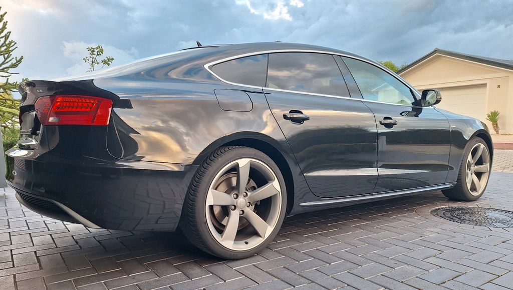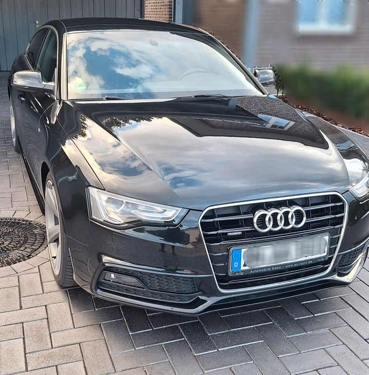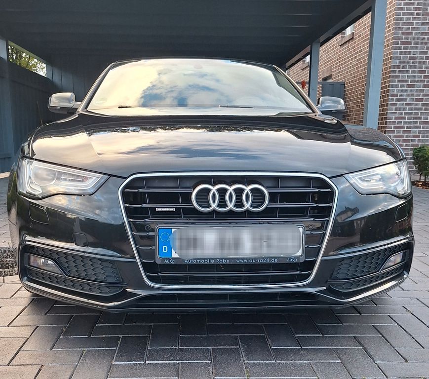 gepflegter Audi A5 Sportback 2.0 TDI quattro S tronic in Myth Black Metallic mit umfangreicher S line Ausstattung. Fahrzeug technisch in gutem Zustand, kleinere Lackschäden vorhanden. Ein fachgerecht reparierter Unfallschaden liegt vor.S line Sportpaket & Exterieurpaket