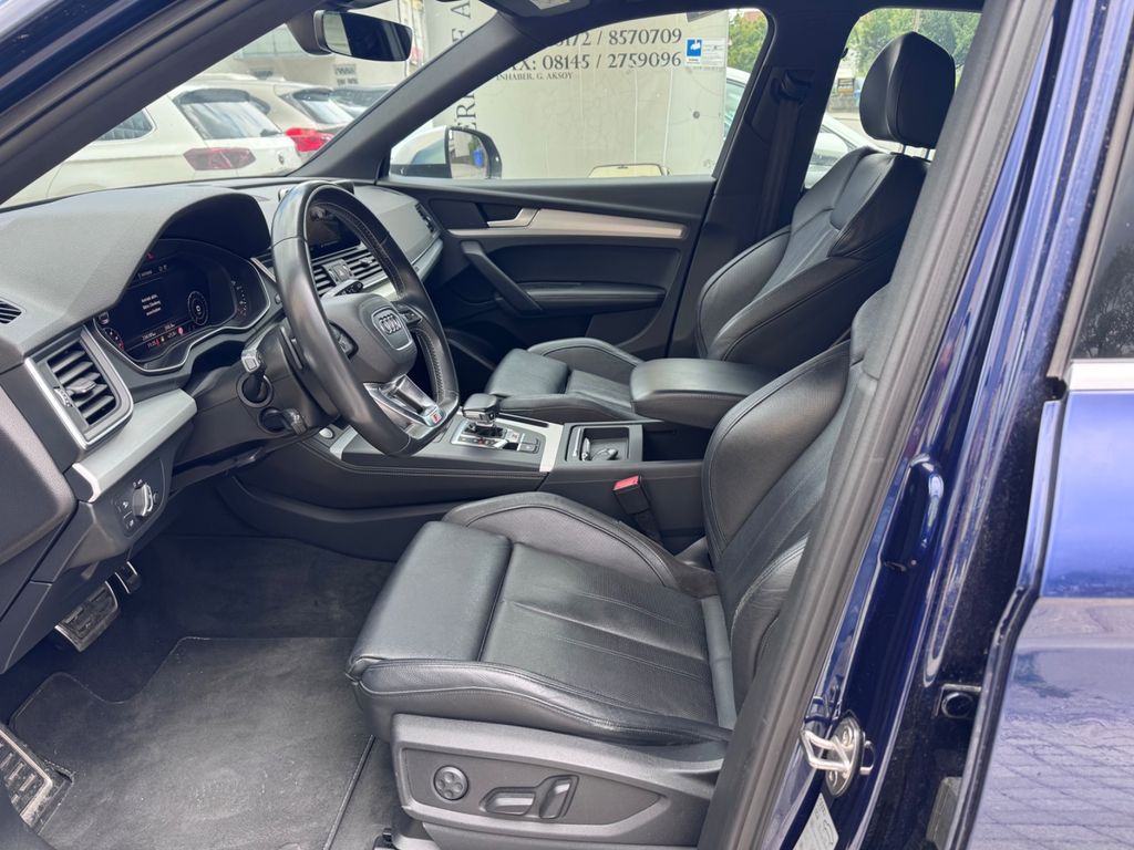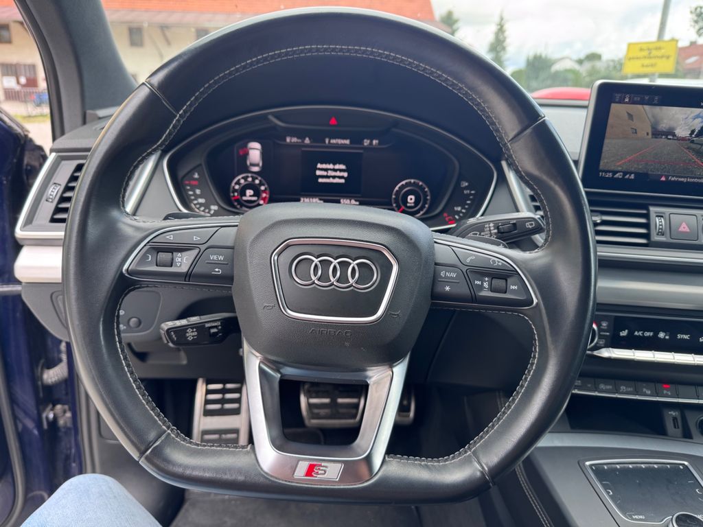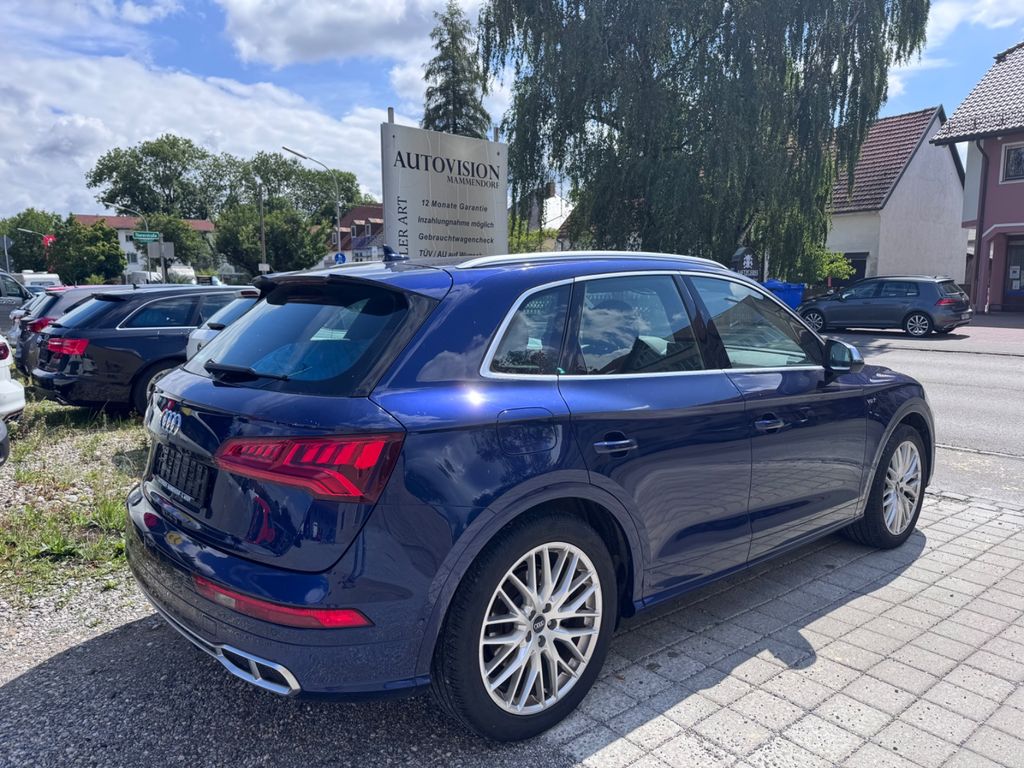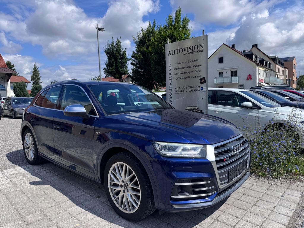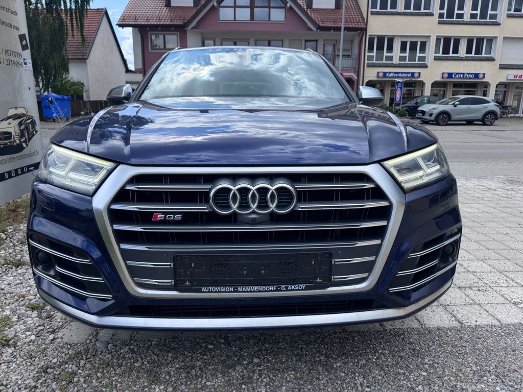 -Verkauf an Export oder Gewerbe bevorzugtDieser gepflegte Audi SQ5 aus dem Jahr 2018 präsentiert sich in elegantem Blau mit schwarzer Lederausstattung. Mit nur einem Vorbesitzer und lückenloser Servicehistorie bietet dieses SUV ein überzeugendes Gesamtpaket. Der kraftvolle 6-Zylinder Benzinmotor mit 354 PS sorgt für dynamische Fahrleistungen, während der Allradantrieb optimale Traktion gewährleistet. Die Automatik-Schaltung mit Schaltwippen am Lenkrad ermöglicht sportliches oder komfortables Fahren nach Wunsch. Das Fahrzeug verfügt über ein umfangreiches Sportpaket und zahlreiche Assistenzsysteme wie adaptiven Tempomat, Spurhalteassistent und Kollisionsvermeidung. Die 3-Zonen-Klimaautomatik, beheizte und belüftete Sitze sowie das digitale Cockpit mit Navigationssystem und Touchscreen sorgen für höchsten Komfort. Praktische Features wie die elektrische Heckklappe und Dachreling erhöhen die Alltagstauglichkeit dieses Premium-SUVs.