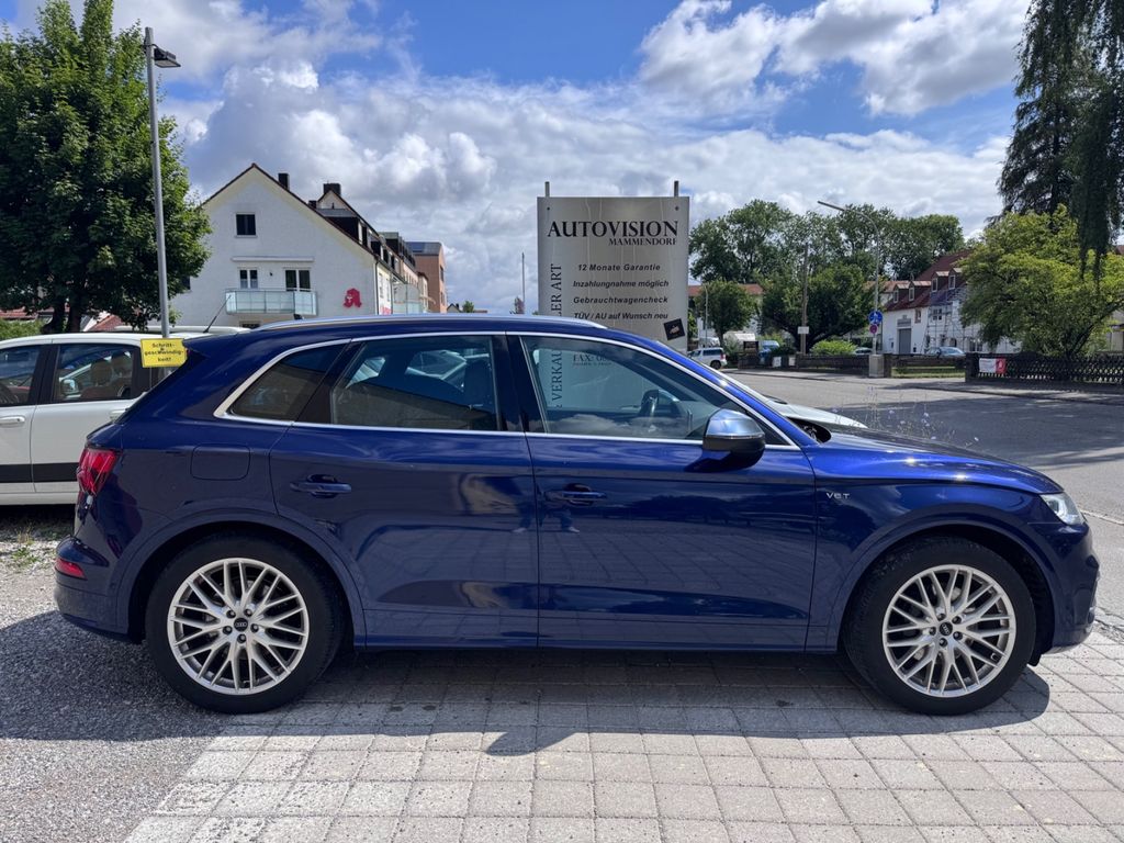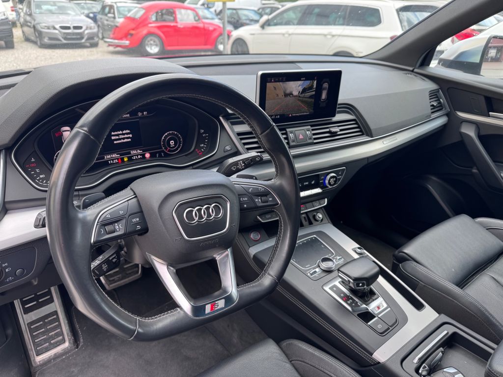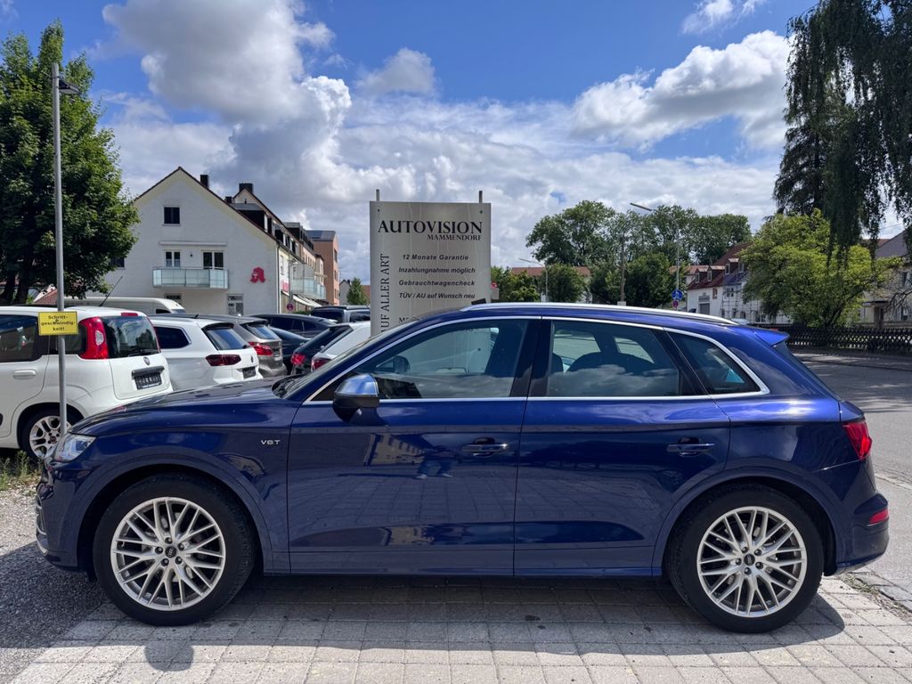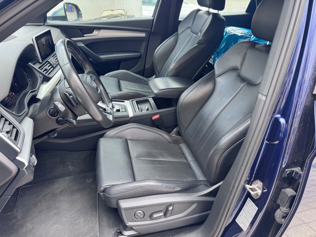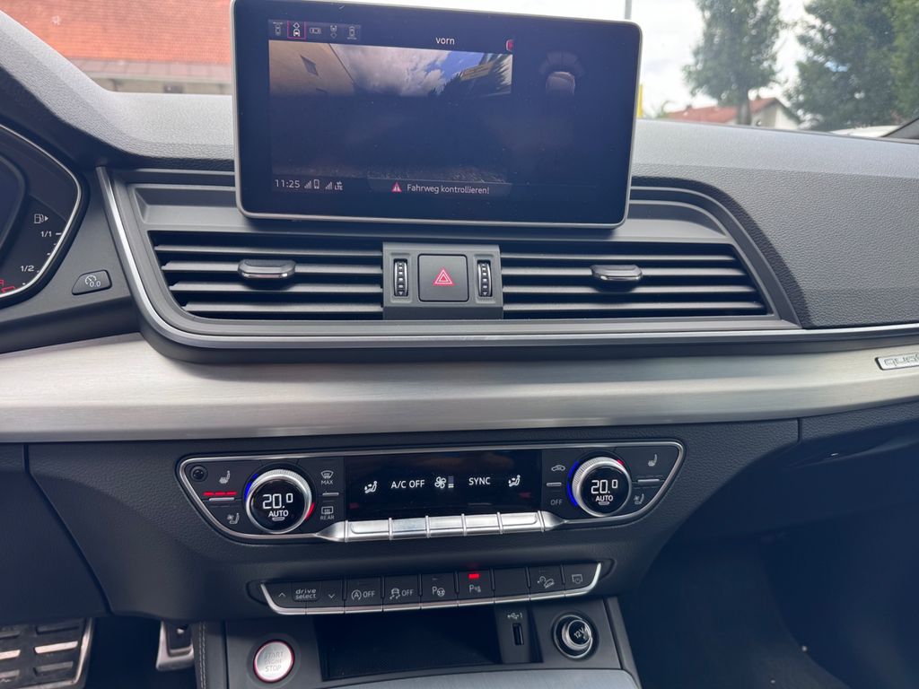 -Verkauf an Export oder Gewerbe bevorzugtDieser gepflegte Audi SQ5 aus dem Jahr 2018 präsentiert sich in elegantem Blau mit schwarzer Lederausstattung. Mit nur einem Vorbesitzer und lückenloser Servicehistorie bietet dieses SUV ein überzeugendes Gesamtpaket. Der kraftvolle 6-Zylinder Benzinmotor mit 354 PS sorgt für dynamische Fahrleistungen, während der Allradantrieb optimale Traktion gewährleistet. Die Automatik-Schaltung mit Schaltwippen am Lenkrad ermöglicht sportliches oder komfortables Fahren nach Wunsch. Das Fahrzeug verfügt über ein umfangreiches Sportpaket und zahlreiche Assistenzsysteme wie adaptiven Tempomat, Spurhalteassistent und Kollisionsvermeidung. Die 3-Zonen-Klimaautomatik, beheizte und belüftete Sitze sowie das digitale Cockpit mit Navigationssystem und Touchscreen sorgen für höchsten Komfort. Praktische Features wie die elektrische Heckklappe und Dachreling erhöhen die Alltagstauglichkeit dieses Premium-SUVs.