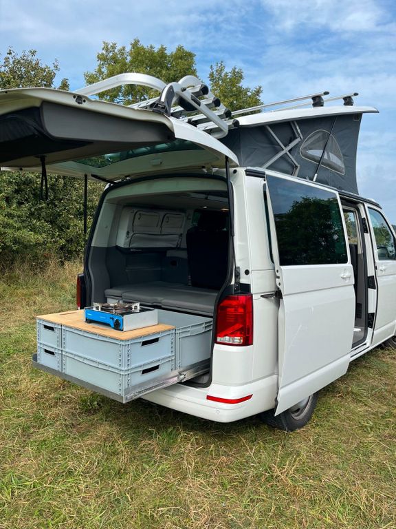 Wir verkaufen hiermit schweren Herzens unseren geliebten VW T6.1 California, da wir für unsere gewachsene Familie einen größeren Camper brauchen.Unser California hat die seltene Konfiguration als Beach Tour mit zwei Schiebetüren, aber trotzdem voll ausgestatteter Küche, unserer Meinung nach besser als jeder Ocean oder Coast.