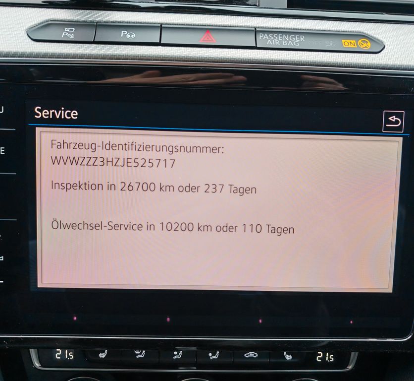 Das Fahrzeug hat 2 Vorbesitzer, er ist unfallfrei und durchgehend bei VW werkstattgepflegt. Das Getriebesteuergerät wurde 2025 für 2200 € repariert (bekanntes DSG-Problem bei VW, Audi, Skoda). Die letzte große Inspektion war 2024 (1300 €), die letzte kleine Inspektion war 2025. Alle Chromleisten wurden schwarz glänzend foliert.