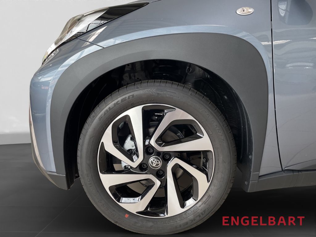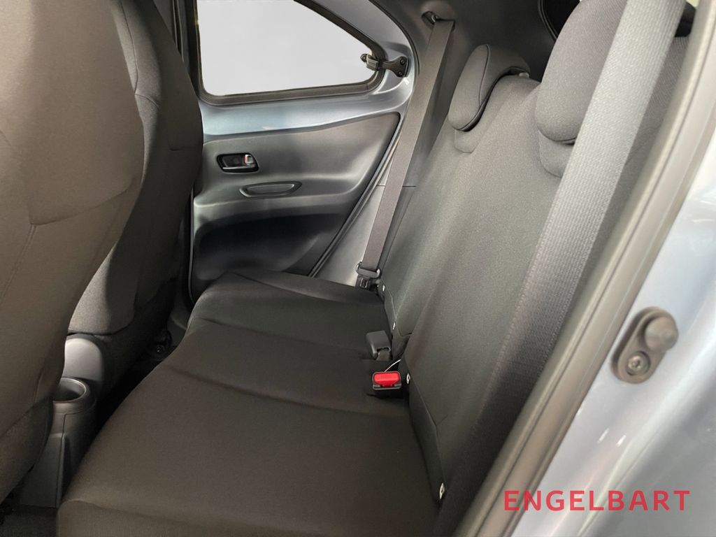 - Weiteres: Klimaanlage, Reifendruck-Kontrollsystem, Reifen-Reparaturkit, Schadstoffarm nach Abgasnorm Euro 6d, Innenraumfilter: Staub- und Pollenfilter mit Aktivkohlefilter, Schutzfolie Türgriffmulde, ConstructionTimeMapping, Airbag Fahrer-/Beifahrerseite, Anti-Blockier-System (ABS), Nebelscheinwerfer, Stoßfänger Wagenfarbe, Tagfahrlicht LED, Fensterheber elektrisch vorn, Lenksäule (Lenkrad) höhenverstellbar, Seitenairbag vorn, Außenspiegel elektr. verstell- und heizbar, Kopf-Airbag-System, USB-Schnittstelle, Getriebe 5-Gang, Zentralverriegelung, Gepäckraumabdeckung / Rollo, Rücksitz geteilt, Park-Assistent mit Rückfahrkamera, 2-Farben-Lackierung Metallic, 3-Speichen Lenkrad, Audiobedienung am Lenkrad, Autom. Begleitfunktion der Beleuchtung (Follow me home), Bluetooth-Schnittstelle, DAB-Tuner (Radioempfang digital), Design-Paket, Eco-Anzeige für verbrauchsoptimiertes Fahren, ESP mit Schlupfregelung (VSC mit TRC), Fernlichtassistent (Abblendautomatik Fahrlicht, AHB), Freisprechanlage Bluetooth, Geschwindigkeits-Begrenzeranlage, Gurtwarner hinten, Isofix-Aufnahmen für Kindersitz, Kindersicherung, Kopfstützen hinten, Lederlenkrad, Mica-Lackierung, Motor 1,0 Ltr. - 53 kW KAT, Müdigkeitserkennungs-Sensor, Multimedia Display (9,0 Zoll), Multimedia Toyota Touch, Pre-Collision-System (PCS), Rücksitz klappbar, Servolenkung elektrisch, Sicherheitssystem Toyota Connect mit automatischem Notruf (eCall), Sitzheizung vorn, Sitzhöhenverstellung Fahrersitz, Smartphone-Integration x-connect (Apple CarPlay und Android Auto), Spiegel schwarz lackiert, Spurhalteassistent, Stop&Go-System (TSGS), Toyota Safety Sense, Türgriffe lackiert, Verglasung hinten abgedunkelt, Verkehrszeichenerkennung (RSA), Warnanlage für Sicherheitsgurte vorn, ZV mit Fernbedienung