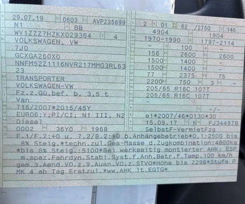 Abdeckung Schiebetürleiste, Airbag Beifahrer abschaltbar, Airbag Fahrer-/Beifahrerseite, Außenspiegel konvex, links, Außenspiegel konvex, rechts, Bodenbelag im Fahrerhaus: Gummi, Fahrassistenz-System: Bremsassistent (HBA), Fahrassistenz-System: Multikollisionsbremse (Multi Collision Brake), Frontscheibe Verbundglas getönt, Handschuhfach abschließbar, Heckklappe ohne Verglasung, Innenraumfilter: Pollenfilter, Karosserie/Aufbau: Kasten Standard, Karosserievariante: Normaldach, Kraftstofftank: 70 Ltr., Lenksäule (Lenkrad) verstellbar, Motor 2,0 Ltr. - 62 kW TDI, Nichtraucher-Paket, Radstand 3000 mm, Reifen-Reparaturkit, Schadstoffarm nach Abgasnorm Euro 6, Schiebetür Lade-/Fahrgastraum rechts, Stahlfelgen 6,5x16, Start/Stop-Anlage Motor, Türablagekasten vorn, Verkleidung im Lade-/FG-Raum: Hartfaser halbhoch, Wärmeschutzverglasung