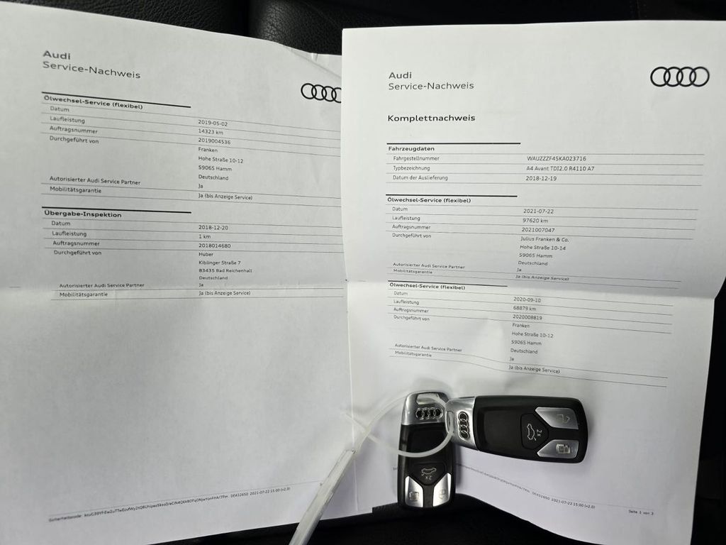 Airbag Fahrer-/Beifahrerseite, Antriebs-Schlupfregelung (ASR) mit EDS, Außenspiegel asphärisch, links, Außenspiegel asphärisch, rechts, Außenspiegel elektr. verstell- und heizbar, Außenspiegel Wagenfarbe, Blinkleuchten LED in Außenspiegel integriert, Bremsassistent, Dachkantenspoiler, Dachreling, Einstiegsleisten mit Aluminiumeinlage, Elektron. Differentialsperre (EDS), Fahrassistenz-System: City-Notbremsfunktion (Audi pre sense City), Fahrassistenz-System: Müdigkeitserkennung (Pausenempfehlung), Gepäck-/Laderaumabdeckung elektrisch, Gepäckraum-Abtrennung (Netz), Gepäckraumklappe elektr. betätigt (öffnen + schliessen), Geschwindigkeits-Begrenzeranlage, Innenausstattung: Dekoreinlagen Diamantlack silbergrau, Isofix-Aufnahmen für Kindersitz, Karosserie: 4-türig, Klimaautomatik, Kopf-Airbag-System (Sideguard), Ladekantenschutz (Edelstahl), LM-Felgen, Modellbezeichnung mit neuer Leistungskennzeichnung, Motor 2,0 Ltr. - 110 kW 16V TDI, Multi-Media-Interface MMI Basic Plus / MMI Radio Plus, Nichtraucher-Paket, Reifen-Reparaturkit, Reifenkontroll-Anzeige, Rücksitzlehne geteilt/klappbar, Schadstoffarm nach Abgasnorm Euro 6d-TEMP, Scheibenwaschdüsen heizbar, SCR-System (AdBlue-Technologie), Seitenairbag vorn, Sitze vorn manuell einstellbar, Standard-Fahrwerk, Start/Stop-Anlage, Stoßfänger Ausführung: Basis, Wendeladeboden, Wärmeschutzverglasung grün getönt, Xenon-Scheinwerfer Plus (Abblend- und Fernlicht)