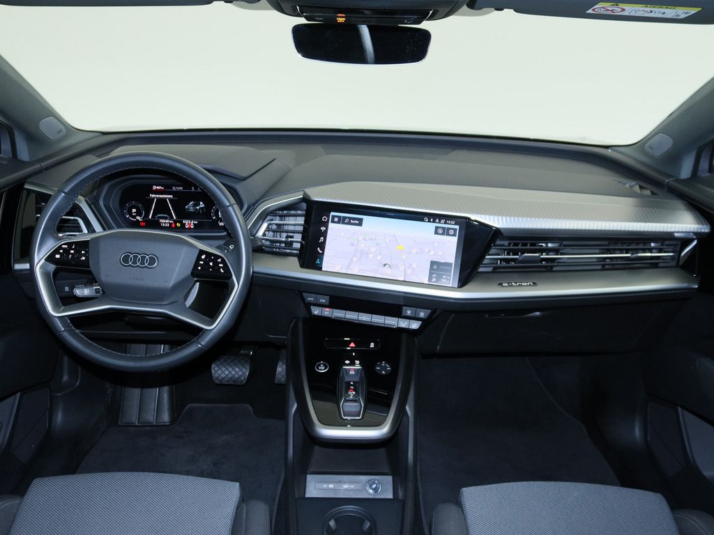Audi connect (Notruf- und Assistance-System), Fahrassistenz-System: Notfall-Assistent mit automatischem Notruf, Fahrassistenz-System: Ausweich-Assistent, Fahrassistenz-System: Abbiege-Assistent links, Glanz-Paket, Außenspiegel Wagenfarbe, Dachreling (Aluminium), Scheinwerfer LED, Heckleuchten LED, Licht- und Regensensor, Tagfahrlicht LED, Stoßfänger Ausführung: Basis, Wärmeschutzverglasung grün getönt, Frontscheibe Klarglas, Radioempfang digital (DAB), Audi music interface, Universal-Schnittstelle Bluetooth, Audi connect (Remote / Control), Reifenkontroll-Anzeige, Farbdisplay (10,1 Zoll), Airbag Fahrer-/Beifahrerseite, Seitenairbag vorn mitte (Interaktionsairbag), Kopf-Airbag-System (Sideguard), Seitenairbag vorn, Airbag Beifahrerseite abschaltbar, Mittelarmlehne vorn Komfortausstattung, Fußmatten Velours, Rücksitzlehne geteilt/klappbar, Fensterheber elektrisch vorn + hinten, Wegfahrsperre (elektronisch), Akustischer Fußgängerschutz, Außensound (e-sound), Steckdose (12V-Anschluß) in Mittelkonsole vorn, Isofix-Aufnahmen für Kindersitz an Beifahrersitz und Rücksitz, Anti-Blockier-System (ABS), Fahrassistenz-System: Bremsassistent (Audi pre sense front), Standard-Fahrwerk, Fahrassistenz-System: Spurverlassenswarnung, Servolenkung elektro-mechanisch, Elektron. Stabilitäts-Programm (ESP), HV-Batterie 82 kWh brutto / 77 kWh netto, Ladekabel mit Typ 2-Stecker (Mode 3), On-Board-Ladegerät (bis 11 kW), Ladedose (AC / DC), Antriebsart: Heckantrieb, Radstand 2764 mm, Getriebe für Elektrofahrzeug, Elektromotor 150 kW (cont. 70 kW).