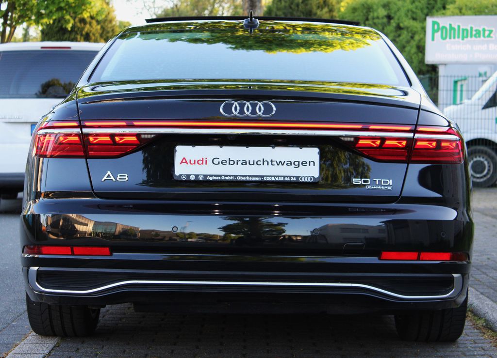 Airbag Beifahrerseite abschaltbar, Airbag Fahrer-/Beifahrerseite, Assistenz-Paket Tour, Audi connect (Internetbasierende Dienste), Audi connect (Notruf- und Assistance-System), Außenspiegel elektr. verstell-, heiz- und anklappbar, mit Abblendautomatik und Memory, Außenspiegel Wagenfarbe, Bluetooth-Freisprecheinrichtung mit Spracherkennung (Audi Phone Box), Dachhimmel Stoff, Diebstahlsicherung für Räder (Felgenschlösser), Einparkhilfe vorn und hinten, akustisch und optisch mit selektiver Anzeige (APS Plus), Fahrassistenz-System: Bremsassistent (Audi pre sense front), Fahrassistenz-System: Insassen-Schutzsystem (Audi pre sense basic), Fahrassistenz-System: Spurverlassenswarnung inkl. Notfall-Assistent, Frontscheibe Wärmeschutzverglasung, Fußgänger-Schutzsystem, Fußmatten Velours, Gepäckraumklappe elektr. betätigt (öffnen + schliessen), Glanz-Paket, Harnstofftank (SCR): 24 Ltr., Innenausstattung: Dekoreinlagen unten Feinlack graphitgrau, Isofix-Aufnahmen für Kindersitz, Karosserie: 4-türig, Kopf-Airbag-System (Sideguard), Kraftstofftank: 82 Ltr., Kühlbox im Handschuhfach, Matrix Heckleuchten OLED mit Schlusslichtsignatur 1, Matrix-LED-Scheinwerfer mit Dynamischer Lichtinszenierung und OLED Heckleuchten, Mild-Hybrid 210 kW (Motor 3,0 Ltr. - 210 kW V6 24V TDI), Mild-Hybrid-Technologie, Modellpflege, Multi-Media-Interface MMI Navigation Plus mit MMI Touch, Nichtraucher-Paket, Reifen-Reparaturkit, Reifenkontroll-Anzeige, Rücksitzbank / Lehne nicht klappbar, Schadstoffarm nach Abgasnorm Euro 6d, Schalt-/Wählhebelgriff Leder, Schließ-/Startsystem Advanced Key (Komfortschlüssel, mit Safelock), Seitenairbag vorn und hinten, Sitze vorn elektr. verstellbar (mit Memory), Start/Stop-Anlage, Wärmeschutzverglasung grün getönt (seitlich / hinten), Head-up-Display