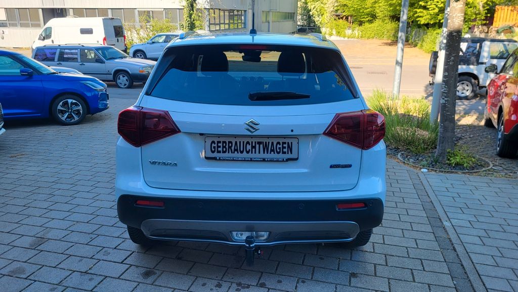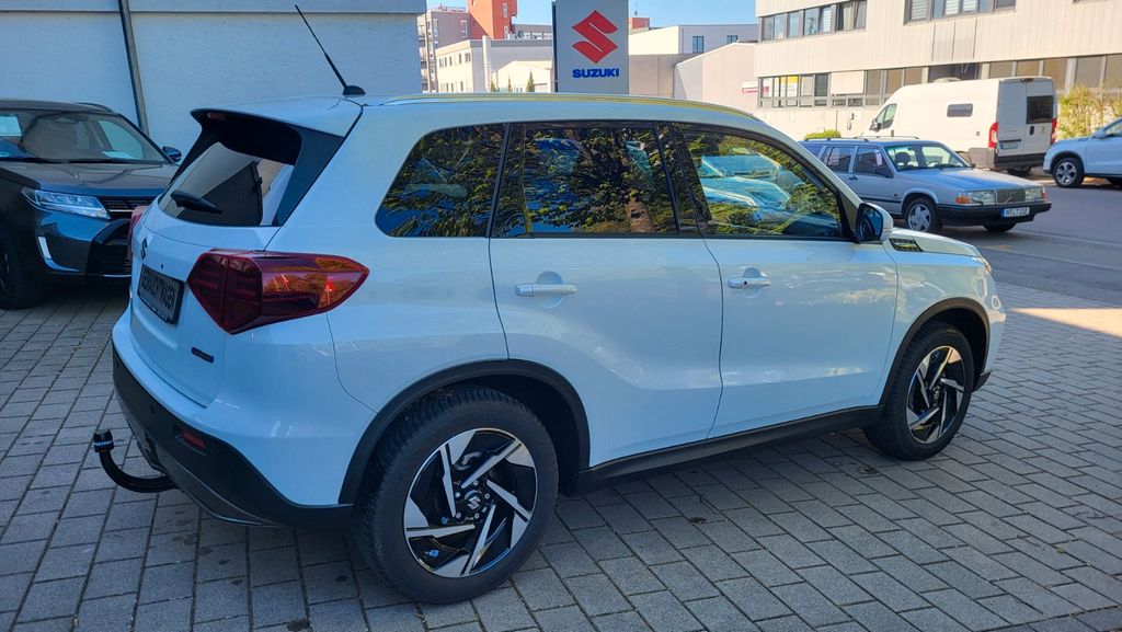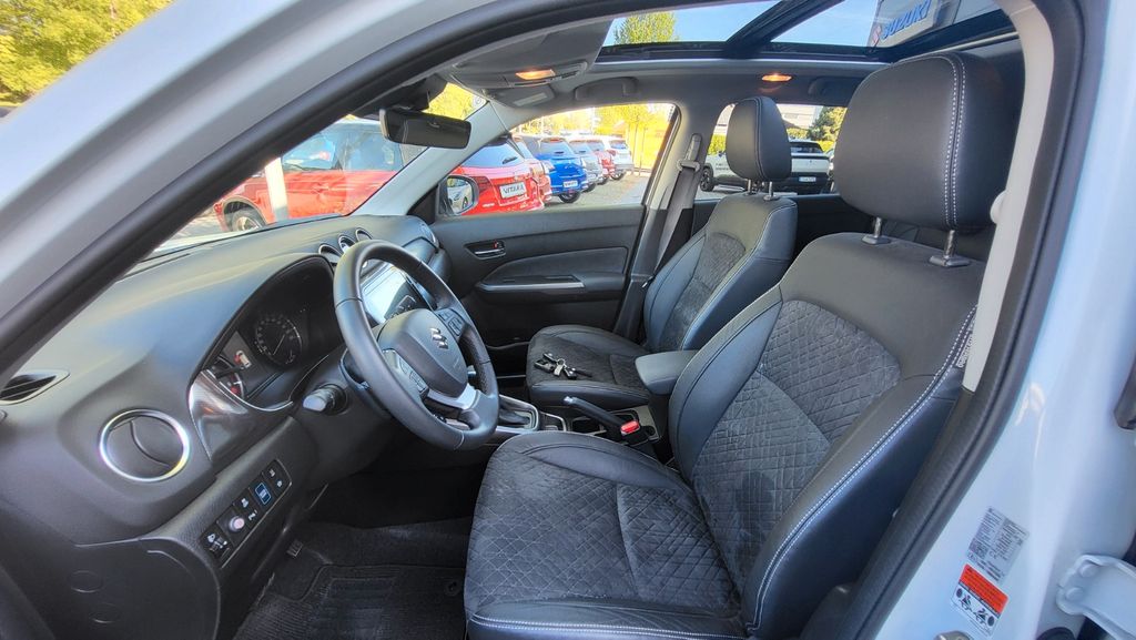 Entdecken Sie den vielseitigen Suzuki Vitara mit Hybridantrieb, der Effizienz und Komfort perfekt kombiniert. Dieses gepflegte Fahrzeug aus dem Jahr 2025 überzeugt mit seinem sparsamen 1,5-Liter-Motor (102 PS) und automatischem Getriebe. Der Frontantrieb sorgt für sicheres Fahrverhalten, während die umfangreiche Sicherheitsausstattung mit Spurhalteassistent, Kollisionsvermeidung und Müdigkeitserkennung für entspanntes Fahren sorgt. Das Interieur in schwarzer Kunstlederoptik bietet Platz für 5 Personen und besticht durch Komfortmerkmale wie beheizbare vordere Sitze, Armlehne und Panorama-Glasdach. Die weiße Metallic-Lackierung verleiht dem SUV einen eleganten Auftritt. Mit voller Servicehistorie und gültiger Herstellergarantie bis 01/28 ist dieser Vitara eine zuverlässige Wahl. Die moderne Konnektivität mit Apple CarPlay, Android Auto und Navigationssystem macht jede Fahrt zum Vergnügen.- Hybridantrieb mit 102 PS und Automatikgetriebe