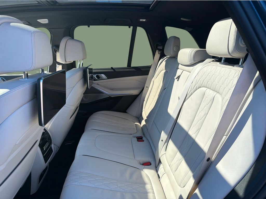 BMW Display-Key, Fahrassistenz-System: Driving Assistant Professional, Fond-Entertainment-System Professional, Getränkehalter, Head-up-Display, Induktionsladeschale für Smartphone (Wireless Charging), Klimaautomatik 4-Zonen mit autom. Umluft-Control, Komfortsitze vorn elektr. verstellbar (mit Memory), LM-Felgen vorn/hinten: 9,5x22 / 10,5x22 (Doppelspeiche 742 M, Bicolor, Jet Black), Metallic-Lackierung, Panoramadach Sky Lounge (Glas, LED-Beleuchtung), Parkassistent-Paket Plus, Reifen-Reparaturset (Mobility-Pack), Scheinwerfer Laserlicht, Sitzbezug / Polsterung: Leder Merino (erweiterter Umfang), Soft-Close-Automatik für Türen, Sonnenschutzrollo an Türscheiben hinten, Sonnenschutzverglasung (hinten abgedunkelt), Sound-System Bowers & Wilkins, Standheizung, Verglasung Akustikglas, Wärme-Komfort-Paket vorn