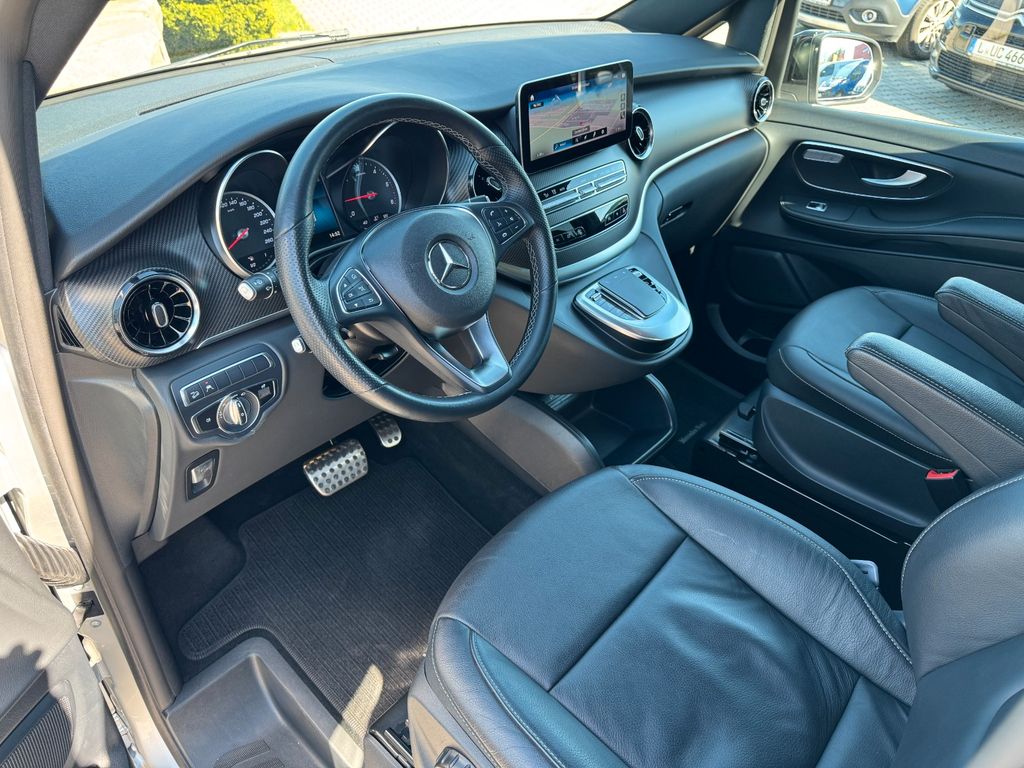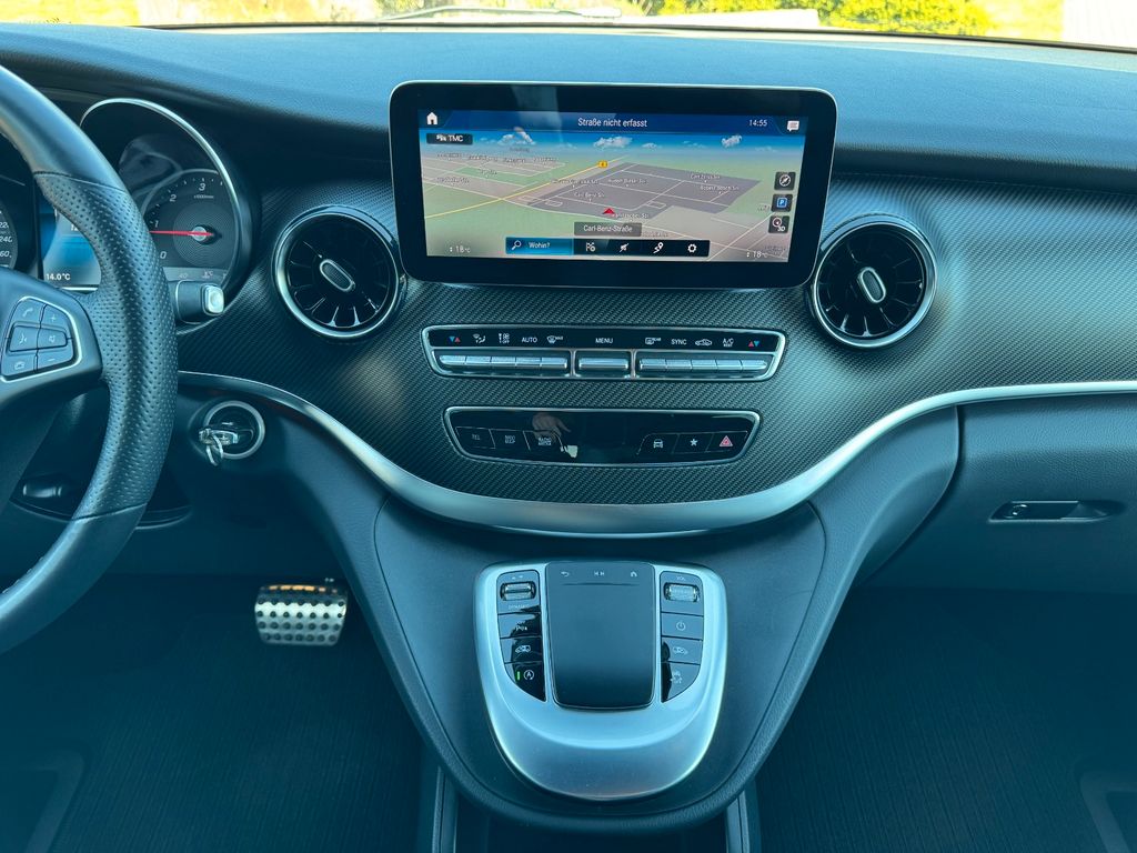 Ablagenetz an Vordersitzlehne links, AMG-Line, Anhängelast 2500 kg, Dachreling (Aluminium eloxiert), Fahrassistenz-Paket, Fahrassistenz-System: Fernlichtassistent Plus, Fahrassistenz-System: Verkehrs-Informations-System Live Traffic, Fahrwerks-Dämpfungssystem Agility Control, Heckklappe mit automatischem Öffnungs- und Schließsystem, Hold-Funktion, Innenausstattung: Zierteile Carbon-Optik, Klimaautomatik Fond (Tempmatik), Komfort-Klimaautomatik Thermotronik, Kraftstofftank: vergrößert, Laderaumunterteilung, LM-Felgen 8x19 (AMG, 7-Doppelspeichen), Metallic-Lackierung, Multimediasystem MBUX (Touchscreen 10,25"), Navigationssystem für Multimediasystem MBUX, Night-Paket, Panorama-Schiebedach vorn elektrisch, mit Panoramadach hinten, Park-Paket, Schiebetür links elektrisch, Schiebetür rechts elektrisch, Sitze im Fahrerhaus: Fahrersitz heizbar, Smartphone-Integration (Apple CarPlay und Android Auto), Spiegel-Paket, Steckdosen (12V-Anschluß) im Lade-/Fahrgastraum, 2-fach, Tisch-Paket, Vorbereitung Navigationssystem (für Multimediasystem MBUX)