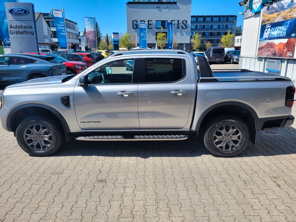 Audio-Paket 102, Ausstattungs-Paket: Turnier (Dachreling, Gepäckraum-Abtrennung Netz), Außenspiegel elektr. anklappbar, Außenspiegel elektr. verstell- und heizbar, Außenspiegel Sport Design Anthrazit, Blinkleuchte in Außenspiegel integriert, Dachhimmel Stoff, dunkel, Dachreling, FordPass Connect inkl. eCall, Fußmatten hinten, Fußmatten Premium, Getriebe Automatik - Typ: 10R80 (10-Stufen), Getränkehalter vorn, Heckklappe Easy Lift (Pick-Up), Heckklappenentriegelung elektrisch (ohne Schloss), Heckleuchten LED, Heckscheibe heizbar, Innenraumfilter: Staub- und Pollenfilter, Innenspiegel mit Abblendautomatik, Karosserie/Aufbau: Pritsche, Doppelkabine, Klimaautomatik 2-Zonen, Koffer-/Laderaummanagement-System, Kombiinstrument Digitalanzeige 8 Zoll, Kotflügelverbreiterung, Lenkrad heizbar, Motor 3,0 Ltr. - 177 kW EcoBlue, Nebelscheinwerfer LED, Off-Road-Paket, Outdoor-Paket, Parkpilotsystem hinten, Rad-Paket 14, Radstand 3270 mm, Reifendruck-Kontrollsystem, Rücksitz-Paket 15, Schadstoffarm nach Abgasnorm Euro 6d, Scheinwerfer LED, Seitenschweller mit Trittbrett, Sicherheits-Paket 3, Sitz-Paket 7, Sitzbezug / Polsterung: Leder, Sportbügel hinten (GFK) Wagenfarbe (Ladefläche), Standard Variante, Start/Stop-Anlage, Stoßfänger hinten mit Trittstufe, Türgriffe außen Wagenfarbe, Verglasung hinten abgedunkelt (Privacy Glass), Vorbereitungs-Paket Tachograph