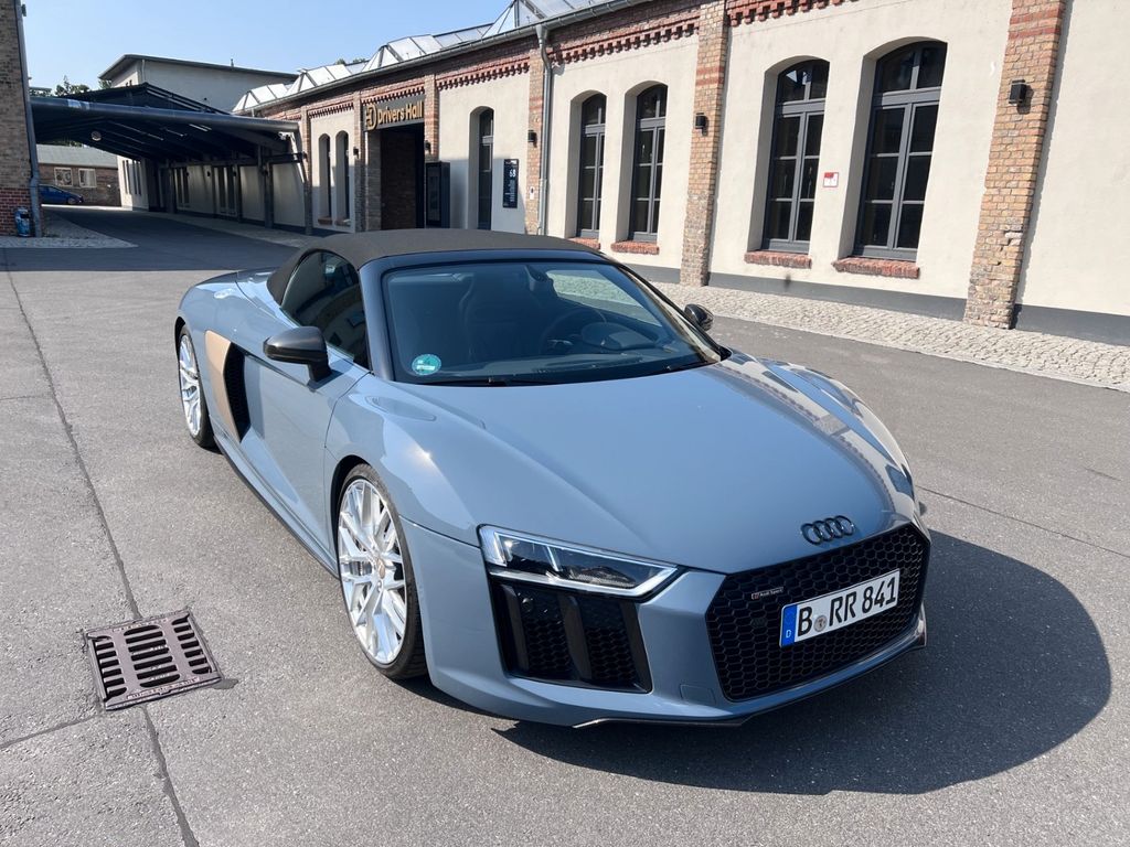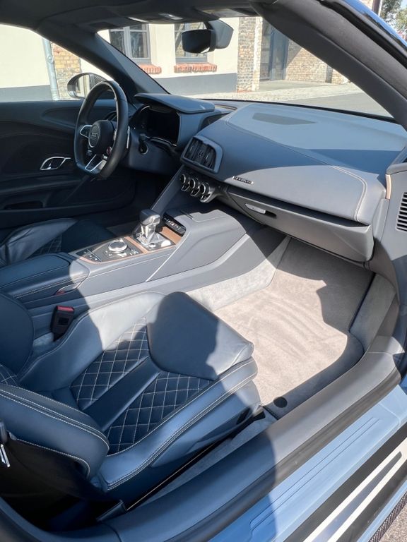 Ich verkaufe einen Audi R8 V10 Plus Spyder Quattro – 610 PS einer der letzten echten V10 Saugmotor ohne OPF Filter, der kann noch richtig laut sein auf entspr. ModiDas Auto ist eine absolute Einzelanfertigung und nur 1x so auf der Welt gebaut worden, da es vom damaligen Audi Leiter Interieur Design für sich gebaut wurde, Nachweis liegt in Form von persönlichem Austausch vor. Alles an diesem R8 stammt aus der Schmiede von Audi exklusive und den Lack und Lederfarbe gibt es so nur auf Einzelbestellung. Der Lack ist ein spez. Gold-Metallic Lack, sieht hinreißend aus! Die Farbe heisst : Kemoragrau!