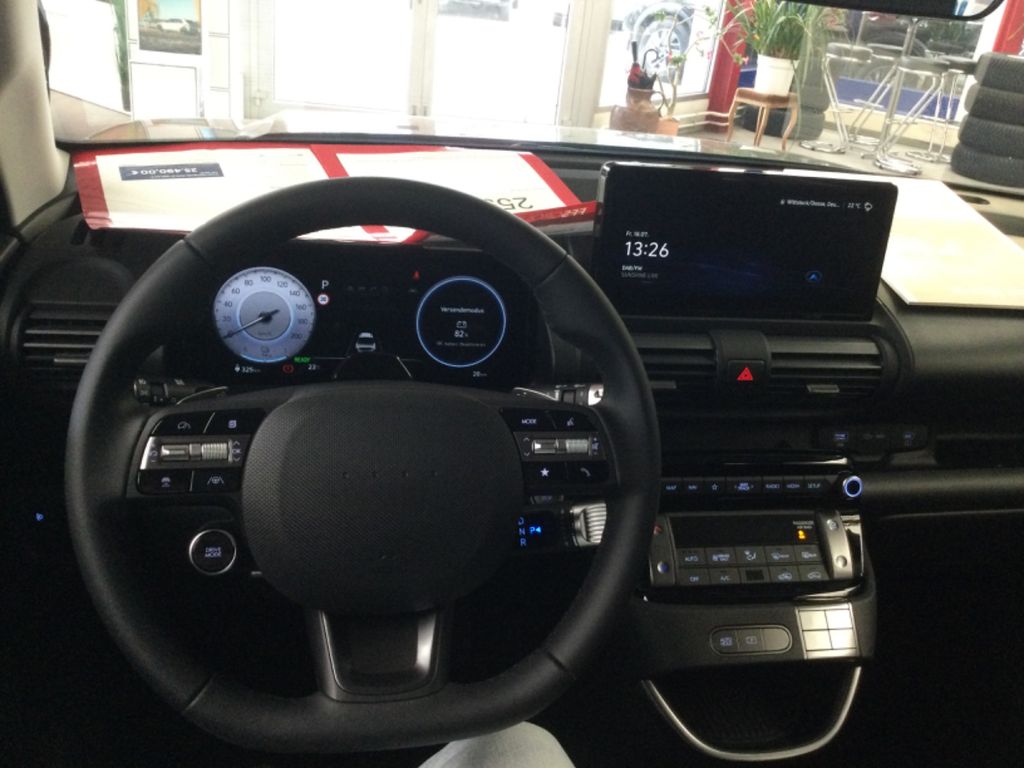 4 Lautsprecher, Airbag Beifahrerseite, Airbag Beifahrerseite abschaltbar, Airbag Fahrerseite, Audiosystem: Radio RDS, Außenspiegel elektr. anklappbar, Außenspiegel elektr. verstell- und heizbar, beide, Außenspiegel lackiert, Blinkleuchten LED in Außenspiegel integriert, Dachspoiler Wagenfarbe, Zierleisten verchromt, Digital Cockpit (Instrumentenanzeige Digital), Einparkhilfe hinten, Elektromotor 85 kW (cont. 28 kW), Elektron. Stabilitätskontrolle (ESC) mit Bremsassistent, Fahrassistenz-System: aktiver Spurhalteassistent (LKAS, Lane Keep Assist System), Fahrassistenz-System: Aufmerksamkeits-Assistent (In Cabin Camera, ICC), Fahrassistenz-System: Autobahnassistent 1.5 (Highway Driving Assist, HDA 1.5), Fahrassistenz-System: Autonome Notbremsfunktion inkl. Frontkollisionswarnung (FCA), Fahrassistenz-System: Berganfahrhilfe, Fahrassistenz-System: Fahrprofilauswahl (Drive Mode), Fahrassistenz-System: Fernlichtassistent, Fahrassistenz-System: Insassenalarm (RSA), Fahrassistenz-System: Multikollisionsbremse (Multi Collision Brake), Fahrassistenz-System: Sicherheitssystem mit automatischem Notruf (ERA GLONASS / eCall), Fahrassistenz-System: Spurfolgeassistent (Lane Following Assist, LFA), Fahrassistenz-System: Verkehrszeichenerkennung, erweitert (Geschwindigkeits-Regel-/Begrenzeranlage), Fensterheber elektrisch hinten, Freisprecheinrichtung Bluetooth, Gepäck-/Laderaumleuchte, Geschwindigkeits-Begrenzeranlage (Speed-Limiter), Geschwindigkeits-Regelanlage (Tempomat) mit Abstandsregelung ACC, Getriebe für Elektrofahrzeug, Heckscheibe heizbar, HV-Batterie 49 kWh (Lithium-Ionen), Isofix-Aufnahmen für Kindersitz, Karosserie: 5-türig, Klimaautomatik, Kopf-Airbag-System, Kopfstützen hinten verstellbar, Ladevorrichtung On-Board-Lader (3-Phasen), Lenkrad (Leder) 3-Speichen, Lenkrad mit Multifunktion, Lenkrad mit Schaltwippen, Lenksäule (Lenkrad) höhenverstellbar, Lenksäule (Lenkrad) längsverstellbar, Leuchtweitenregelung, Lifetime MapCare (Internetbasierende Dienste), Navigationsbasierte Adaptive Geschwindigkeitsregelanlage (Tempomat) mit Abstandsregelung (NSCC), Navigationssystem, Nebelschlussleuchte LED, Parkbremse elektrisch (EPB), Radioempfang digital (DAB+), Radlaufabdeckung vorn und hinten schwarz, Radstand Standard, Reifen-Reparaturkit, Reifendruck-Kontrollsystem, Rückfahrkamera, Rücksitzlehne geteilt/klappbar, Schalt-/Wählhebel (Shift by Wire), Scheibenbeschlagerkennung / Regelung, Scheinwerfer Halogen, Seitenairbag vorn, Seitenairbag vorn mitte (Central Airbag), Service-System: Online Update OTA (Over The Air), Service-System: Plug & Charge, Service-System: Remote Services (Blue Link), Sitz vorn links höhenverstellbar, Sitzbezug / Polsterung: Stoff, Smartphone Schnittstelle (Apple CarPlay & Android Auto), Sonderlackierung Unbleached Ivory Uni, Sonnenblenden mit Spiegel, Start-Stop-Knopf, Touchscreen-Farbdisplay (10,25 Zoll), Türgriffe außen Wagenfarbe, Unterfahrschutz vorn und hinten (Silber), USB-Anschluss (Typ C), USB-Anschluss Mittelkonsole, Verglasung getönt