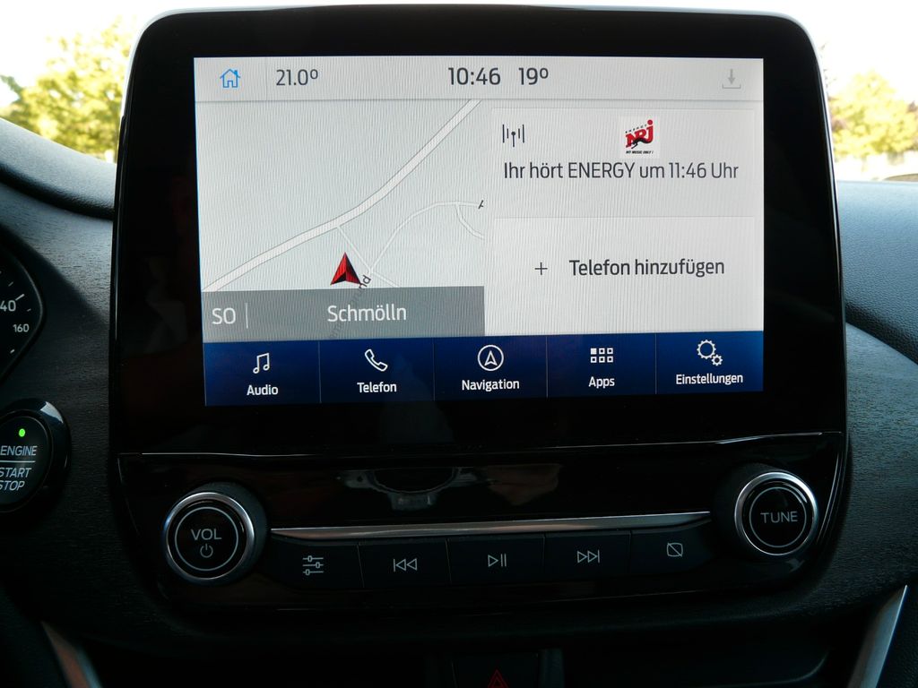 Ambiente-Beleuchtung vorn (LED), Antischlupfregelung (ASR), Audio-Navigationssystem Ford mit AppLink, Außenspiegel elektr. anklappbar, Außenspiegel elektr. verstell- und heizbar, Bordcomputer, Dachhimmel Stoff, Eco-Anzeige für verbrauchsoptimiertes Fahren (EcoCoach), Einparkhilfe hinten, Fahrassistenz-System: Berganfahr-Assistent (Hill-Holder), Fahrassistenz-System: Falschfahrer-Warnfunktion, Fahrassistenz-System: Fernlichtassistent (Scheinwerfer mit Abblendautomatik), Fahrassistenz-System: Notbrems-Assistent, Fahrassistenz-System: Post-Collision-System, Fahrassistenz-System: Pre-Collision-System, Fahrassistenz-System: Spurhalteassistent mit Müdigkeitserkennungs-Sensor, Fahrassistenz-System: Verkehrsschildassistent, Fensterheber elektrisch vorn + hinten mit Komfortschließung, FordPass Connect inkl. eCall, Fußmatten Teppich, Getriebe 6-Gang - Typ: 6MX65, Heckleuchten LED, Innenraumfilter: Staub- und Pollenfilter, Intelligent Protection System (IPS), Intelligenter Geschwindigkeits-Begrenzer, Isofix-Aufnahmen für Kindersitz, Karosserie: 5-türig, Komfort-Paket, Kopfstützen hinten mechan. verstellbar (3 Stück), Lackierung Blazer-Blau uni, Laderaumboden variabel (Ford Megabox), Lendenwirbelstütze Sitz vorn links, Lenksäule (Lenkrad) höhen-/längsverstellbar, LM-Felgen, Mild-Hybrid 114 kW (Motor 1,0 Ltr. - 114 kW EcoBoost), My Key (2. Fahrzeugschlüssel programmierbar), Nebelscheinwerfer LED, Otto-Partikelfilter (OPF), Radstand 2588 mm, Reifen-Reparaturkit, Reifendruck-Kontrollsystem, Rücksitzlehne geteilt/klappbar (60:40), Schadstoffarm nach Abgasnorm Euro 6d, Scheinwerfer-Assistent mit Tag-/Nachtsensor, Sitze vorn höhenverstellbar, Sonnenblende links mit Spiegel (beleuchtet), Sonnenblende rechts mit Spiegel (beleuchtet), Sportsitze vorn, Start/Stop-Anlage, Türgriffe außen Wagenfarbe, Verglasung hinten abgedunkelt (Privacy Glass)
