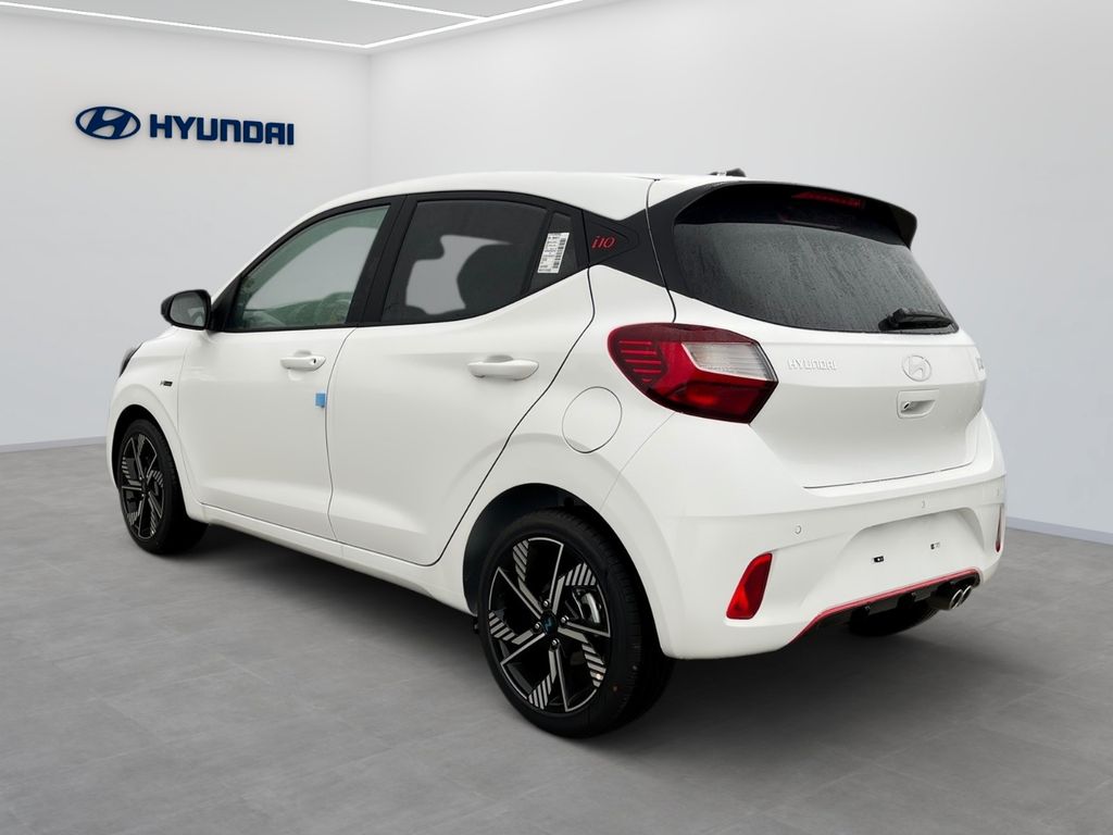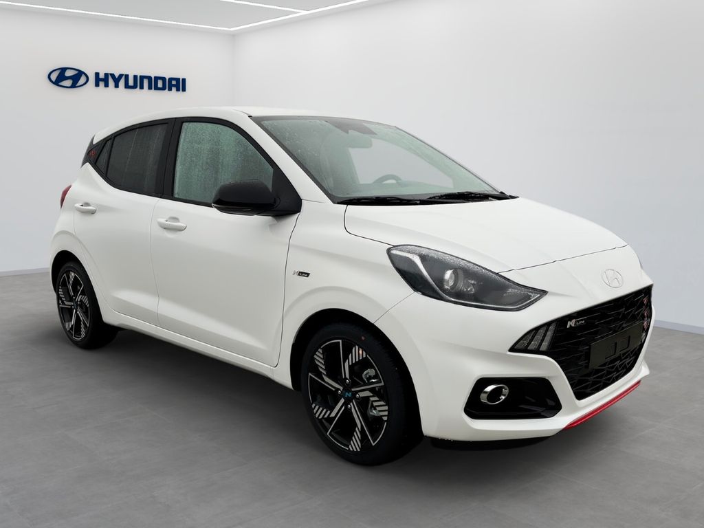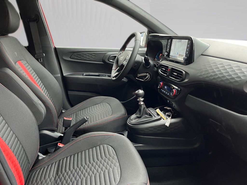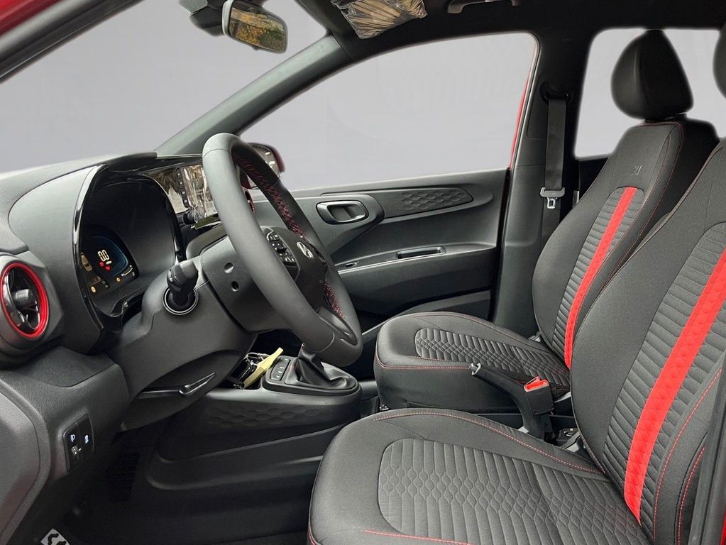 Weitere Ausstattung:2 Lautsprecher, 3. Bremsleuchte, Ablagebox / Stauraum unter Kofferraumboden, Airbag Beifahrerseite, Airbag Beifahrerseite abschaltbar, Airbag Fahrerseite, Aktives Bremslicht (ESS), Audiobedienung am Lenkrad, Audiosystem: Radio RDS, Außenspiegel elektr. anklappbar, Außenspiegel elektr. verstell- und heizbar, beide, Außenspiegel Phantom Black, Blinkleuchte in Außenspiegel integriert, Bordcomputer, Bordcomputer mit TFT-Farbdisplay, hochauflösend, Dachhimmel schwarz, Dachspoiler, Design- und Ausstattungslinie N Line, Einparkhilfe hinten, Einschaltautomatik für Fahrlicht / Lichtsensor, Elektron. Stabilitätskontrolle (ESC) mit Bremsassistent, Fahrassistenz-System: aktiver Spurhalteassistent (LKAS, Lane Keep Assist System), Fahrassistenz-System: Aufmerksamkeits-Assistent, Fahrassistenz-System: Autonome Notbremsfunktion inkl. Frontkollisionswarnung (FCA), Fahrassistenz-System: Berganfahrhilfe, Fahrassistenz-System: Fernlichtassistent, Fahrassistenz-System: Sicherheitssystem mit automatischem Notruf (ERA GLONASS / eCall), Fahrassistenz-System: Verkehrszeichenerkennung, erweitert (Geschwindigkeits-Regel-/Begrenzeranlage), Fensterheber elektrisch hinten, Freisprecheinrichtung Bluetooth, Gepäck-/Laderaumleuchte, Geschwindigkeits-Begrenzeranlage (Speed-Limiter), Gurtstraffer, Heckleuchten LED, Heckscheibe heizbar, Heckscheibenwischer, Isofix-Aufnahmen für Kindersitz, Karosserie: 5-türig, Komfort-Paket, Kopf-Airbag-System, Kopfstützen hinten verstellbar, Lenkrad heizbar, Lenkrad mit Multifunktion, Lenksäule (Lenkrad) höhenverstellbar, LM-Felgen, Modellpflege, Motor 1,0 Ltr. - 66 kW TGDI KAT, Navigationssystem, Nebelschlussleuchte, Otto-Partikelfilter (OPF), Projektor-Scheinwerfer, Radioempfang digital (DAB+), Reifen-Reparaturkit, Reifendruck-Kontrollsystem, Rückfahrkamera, Rücksitzlehne geteilt/klappbar, Schadstoffarm nach Abgasnorm Euro 6e, Schalt-/Wählhebelgriff Leder, Seitenairbag vorn, Service-System: Online Update OTA (Over The Air), Sitz vorn links höhenverstellbar, Sitzbezug / Polsterung: Stoff, Sitzheizung vorn, Smartphone Schnittstelle (Apple CarPlay & Android Auto), Start/Stop-Anlage, Türgriffe außen Wagenfarbe, USB-Anschluss Mittelkonsole, Verglasung hinten abgedunkelt (Privacy Glass), Warnanlage für Sicherheitsgurte, Fahrer-/Beifahrerseite