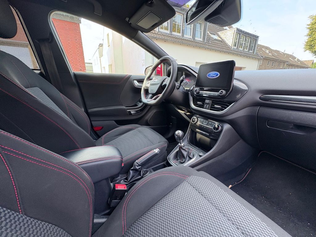 Ambiente-Beleuchtung vorn (LED), Antischlupfregelung (ASR), Audio-Navigationssystem Ford mit AppLink, Außenspiegel elektr. anklappbar, Außenspiegel elektr. verstell- und heizbar, Body-Styling-Paket, Dachhimmel Stoff, dunkel, Eco-Anzeige für verbrauchsoptimiertes Fahren (EcoCoach), Einparkhilfe hinten, Fahrassistenz-System: Berganfahr-Assistent (Hill-Holder), Fahrassistenz-System: Falschfahrer-Warnfunktion, Fahrassistenz-System: Fernlichtassistent (Scheinwerfer mit Abblendautomatik), Fahrassistenz-System: Notbrems-Assistent, Fahrassistenz-System: Post-Collision-System, Fahrassistenz-System: Pre-Collision-System, Fahrassistenz-System: Spurhalteassistent mit Müdigkeitserkennungs-Sensor, Fahrassistenz-System: Verkehrsschildassistent, Farbdisplay für Bordcomputer, Fensterheber elektrisch vorn + hinten mit Komfortschließung, FordPass Connect inkl. eCall, Fußmatten Teppich, Getriebe 6-Gang - Typ: 6MX65, Heckleuchten LED, Innenraumfilter: Staub- und Pollenfilter, Intelligent Protection System (IPS), Intelligenter Geschwindigkeits-Begrenzer, Isofix-Aufnahmen für Kindersitz, Karosserie: 5-türig, Kombiinstrument Digitalanzeige 12,3 Zoll, Kopfstützen hinten mechan. verstellbar (3 Stück), Lackierung Blazer-Blau uni, Laderaumboden variabel (Ford Megabox), Lendenwirbelstütze Sitz vorn links, Lenksäule (Lenkrad) höhen-/längsverstellbar, LM-Felgen, Mild-Hybrid 114 kW (Motor 1,0 Ltr. - 114 kW EcoBoost), My Key (2. Fahrzeugschlüssel programmierbar), Nebelscheinwerfer LED, Otto-Partikelfilter (OPF), Pedale Aluminium, Radstand 2588 mm, Reifen-Reparaturkit, Reifendruck-Kontrollsystem, Rücksitzlehne geteilt/klappbar (60:40), Schadstoffarm nach Abgasnorm Euro 6d, Scheinwerfer LED, Scheinwerfer-Assistent mit Tag-/Nachtsensor, Sitze vorn höhenverstellbar, Sonnenblende links mit Spiegel (beleuchtet), Sonnenblende rechts mit Spiegel (beleuchtet), Sport-Fahrwerk, Sportsitze vorn, Standard Variante, Start/Stop-Anlage, Türgriffe außen Wagenfarbe