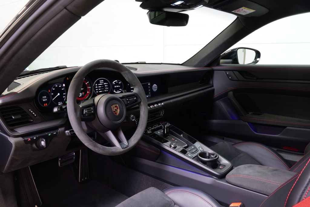 Dieser Porsche 911 aus dem Jahr 2023 verbindet sportliche Leistung mit umfassender Alltagstauglichkeit. Der Sechszylinder-Benziner mit 2.981 cm³ Hubraum leistet 480 PS und wird über Allradantrieb auf die Straße gebracht. Das Fahrzeug präsentiert sich in schwarzer Metallic-Lackierung mit schwarzem Lederinterieur und verfügt über eine lückenlose Servicehistorie.Die Ausstattung ist auf höchstem Niveau: Ein digitales Cockpit, Navigationssystem mit Touchscreen sowie Apple CarPlay und Android Auto sorgen für moderne Konnektivität. Das Performance Handling System und das Sportpaket unterstreichen den dynamischen Charakter des Fahrzeugs. Adaptive Biegescheinwerfer mit LED-Technologie, ein Panoramaglasdach sowie elektrisch verstellbare und beheizbare Sportsitze mit Memory-Funktion runden das Gesamtbild ab. Sicherheitstechnisch ist der Wagen mit adaptivem Tempomat, Kollisionswarner, 360-Grad-Kamera sowie Front- und Hecksensoren ausgestattet.