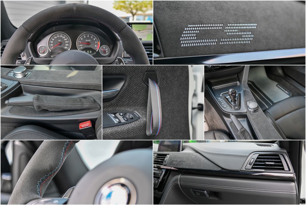 - Im Innenraum des BMW M4 CS dominiert ein Mix aus sportlich-edlem Alcantara und leder sowie vielen Details wie Ziernähten in den M-Farben.