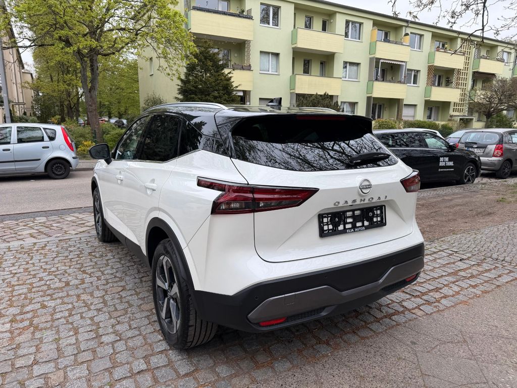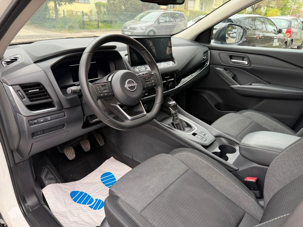 Dieser Nissan Qashqai aus dem Jahr 2024 überzeugt mit einem umfangreichen Ausstattungspaket und einer gepflegten Vorgeschichte – nur ein Vorbesitzer, Nichtraucher, vollständige Servicehistorie und HU/AU Neu. Der 1,3-Liter-Vierzylinder-Benziner mit 140 PS und manuellem Getriebe treibt die Vorderräder an und erfüllt die Abgasnorm Euro 6d-temp. Die weiß-metallic lackierte Karosserie mit LED-Scheinwerfern und Tagfahrlicht hinterlässt einen gepflegten Eindruck.Im Innenraum erwartet den Fahrer ein digitales Cockpit mit Touchscreen, Navigationssystem, Apple CarPlay, Android Auto sowie ein kabelloses Ladesystem. Das Panorama-Glasdach und die Ambientebeleuchtung sorgen für ein angenehmes Raumgefühl. Zur Sicherheitsausstattung zählen Kollisionswarner, Spurhalteassistent, adaptiver Tempomat, Totwinkelwarner, Rückfahrkamera mit 360-Grad-Rundumsicht sowie Front- und Heckparksensoren. Darüber hinaus ist das Fahrzeug mit Anhängerkupplungsvorbereitung und einer gebremsten Anhängelast von 1.400 kg ausgestattet.