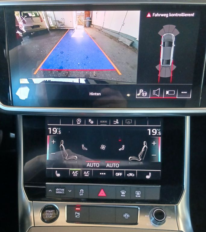 Airbag Beifahrerseite abschaltbar, Airbag Fahrer-/Beifahrerseite, Audi connect (Internetbasierende Dienste), Audi connect (Notruf- und Assistance-System), Audi Drive Select, Audi music interface, Außenspiegel Wagenfarbe, Bedienelemente schwarz matt, Blinkleuchten LED in Außenspiegel integriert, Einparkhilfe vorn und hinten, akustisch und optisch mit selektiver Anzeige (APS Plus), Fahrassistenz-System: Bremsassistent (Audi pre sense front), - Insassen-Schutzsystem (Audi pre sense basic), - Spurverlassenswarnung, - Verkehrszeichenerkennung, Fensterheber elektrisch hinten, Gepäckraumklappe elektr. betätigt (öffnen + schliessen), Glanz-Paket, Harnstofftank (SCR): 12 Ltr., Isofix-Aufnahmen für Kindersitz, Kombiinstrument digital (virtual cockpit plus), Komfort-Klimaautomatik 2-Zonen, Kopf-Airbag-System (Sideguard), Kraftstofftank: 63 Ltr., Mild-Hybrid 210 kW (Motor 3,0 Ltr. - 210 kW V6 24V TDI), Multi-Media-Interface MMI Basic Plus / MMI Radio Plus, Multi-Media-Interface MMI Navigation, Nichtraucher-Paket, Progressivlenkung, Radioempfang digital (DAB), Reifen-Reparaturkit, Reifenkontroll-Anzeige, Schadstoffarm nach Abgasnorm Euro 6d, Scheibenwaschdüsen heizbar, SCR-System (AdBlue-Technologie), Seitenairbag vorn, Start/Stop-Anlage, Wärmeschutzverglasung grün getönt (seitlich / hinten), Zentralverriegelung / Startanlage Keyless-Go