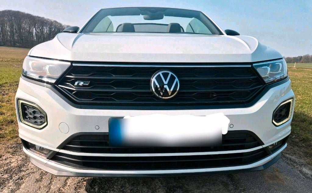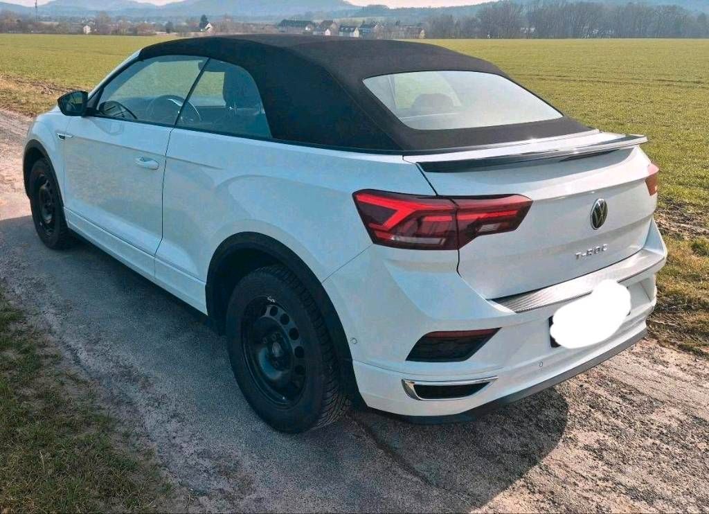 VW T-Roc R-Line Cabrio DSG Pure White BLACK LINE Beats, AHK.....Update: Startklar in die Sommersaison, die Sommerbereifung ist montiert, Fahrzeug ist vollgetankt, HU ist gemacht und somit steht das Cabrio mit sportlicher R Line Ausstattung in der Garage und wartet auf den neuen Besitzer!!!