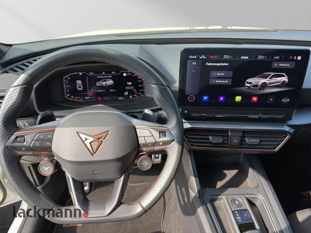 - Weiteres: Antriebs-Schlupfregelung (ASR), Leuchtweitenregelung automatisch, Sitzbezug / Polsterung: Stoff, Antriebsart: Allradantrieb, Reserverad als Notrad, Isofix-Aufnahmen für Kindersitz an Rücksitz, Getriebe 7-Gang - Doppelkupplungsgetriebe DSG, Rücksitzlehne geteilt/klappbar (1/3-2/3), Einparkhilfe hinten, Außenspiegel elektr. verstell-, heiz- und anklappbar mit Spiegelabsenkung und Welcome Light, Leegelung im Kofferraum, Schadstoffarm nach Abgasnorm Euro 6d, LM-Felgen, USB-Schnittstelle vorn (2-fach, Typ C), Seitenairbag vorn mitte (Central Airbag), Zentralverriegelung / Startanlage Keyless Go (Start-Stop-Knopf), Lenkrad heizbar (CUPRA Supersport, Leder) mit Multifunktion und Schaltfunktion, Heckleuchten Voll-LED mit Lichtband (Infinite Light), Ambiente-Beleuchtung Smart Ambient Light / Plus, Audio-Navigationssystem mit Touchscreen Farbbildschirm, Scheinwerfer Voll-LED, Schließ-/Startsystem Kessy Advanced, Airbag Fahrer-/Beifahrerseite, Anti-Blockier-System (ABS), Tagfahrlicht LED, Wegfahrsperre (elektronisch), Kopf-Airbag-System, Gepäckraumabdeckung / Rollo, Licht- und Regensensor, Reifenkontroll-Anzeige, Seitenairbag, Dachreling schwarz, hochglänzend, Heckleuchten LED mit dynamischem Blinklicht, Mittelkonsole vorn mit Mittelarmlehne, Becherhalter, Ablagebox und Luftausströmer hinten, USB-Ladeanschlüsse (2-fach, Typ C) für 2.Sitzreihe, Full Link (MirrorLink, Apple CarPlay und Android Auto), 12V-Steckdose im Laderaum, Adaptive Fahrwerksregelung (DCC), Autom. Distanzregelung (ACC / PCC) mit vorausschauender Geschw.-Regelung, Automatische Distanzregelung (ACC), Beifahrerairbag abschaltbar, Blinkleuchten LED in Außenspiegel integriert, Climatronic 3-Zonen, Dynamic-Paket, Einstiegsleisten (Aluminium) vorn, beleuchtet, Elektron. Differentialsperre (XDS), Elektron. Stabilitätskontrolle (ESC), Fahrassistenz-Paket XL, Fahrassistenz-Paket: Stau- und Notfallassistent, Fahrassistenz-Paket: Travel Assist, Fahrprofilauswahl (CUPRA Drive Profile), Fensterheber elektrisch vorn und hinten mit Komfortschaltung, Fernlichtassistent, Frontkamera, getönte Scheiben - Privacy Glass, Innenspiegel mit Abblendautomatik, Kombiinstrument digital (virtual cockpit), Laderaumboden variabel, Lendenwirbelstütze, Licht- und Sicht-Paket, Lichtassistent (Coming Home, Leaving Home), Mittelarmlehne hinten, Motor 2,0 Ltr. - 228 kW 16V TSI, Müdigkeitserkennung, Parkbremse elektrisch, Progressivlenkung, Radioempfang digital (DAB+), Servolenkung elektro-mechanisch, Sitzheizung vorn, Sitzhöhenverstellung, Sitzhöhenverstellung Fahrersitz, Sport-Schalensitze vorn, Spurhalteassistent, Start/Stop-Anlage, Totwinkel-Assistent mit Auspark-Assistent, Spurwechselassistent und Ausstiegswarnung, Umfeldbeobachtungssystem (Front assist) mit City-Notbremsfunktion, Verkehrszeichenerkennung, Wärmeschutzverglasung, Winter-Paket