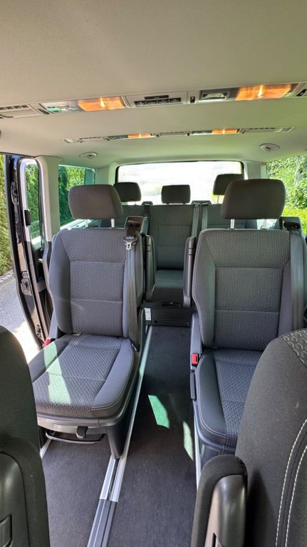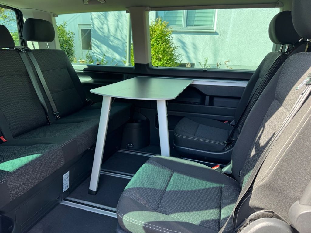 Anhängerkupplung, Allwetterreifen, Sitzheizung vorne, 3-Zonen-Klimaautomatik, Sonnenrollos im Fahrgastraum, Gummifußmatten vorne, Veloursteppich, Klapptisch in der Schiebetür (kann im Bulli und außerhalb des Bullis aufgestellt werden), Fahrer- , Beifahrer- und beide Einzelsitze sind drehbar, 2x Autoschlüssel, 12-Volt-Steckdosen im Fond und im Kofferraum, elektrische Heckklappe, die Einzelsitze und die Rückbank können schnell ausgebaut werden