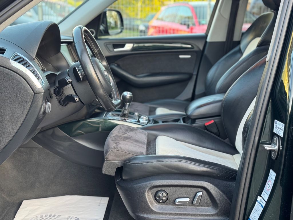 Sonderausstattung:Ablage-Paket, Audi Drive Select, Audi music interface, Außenspiegel elektr. verstell-, heiz- und anklappbar, mit Abblendautomatik und Memory, Dachhimmel Stoff, Silber, Dachreling, Einparkhilfe vorn und hinten, optisch (APS Plus), Fahrassistenz-System: Licht- und Regensensor und Fernlichtassistent, Fahrassistenz-System: Spurwechsel- u. Spurhalteassistent (Side Assist und active lane assist), Fixierset für Schienensystem im Gepäckraum, Gepäckraumklappe elektr. betätigt (öffnen + schliessen), Individuallackierung Audi exclusive, Innenausstattung: Dekoreinlagen Audi exclusive, Wagenfarbe, Innenspiegel mit Abblendautomatik, Lenkrad (Sport/Leder - 3-Speichen, unten abgeflacht) mit Multifunktion und Schaltfunktion, Multi-Media-Interface MMI Navigation Plus, Panoramadach vorn elektrisch, hinten fest, Rücksitze (2. Reihe) verschiebbar (plus), Sitze vorn elektr. verstellbar (links mit Memory), Sound-System Bang & Olufsen, Standheizung mit Zeitschaltuhr, Türarmlehnen beledert, Verglasung hinten abgedunkelt (Privacyverglasung), Vorrüstung Mobiltelefon/Handy mit Bluetooth-Schnittstelle, Xenon-Scheinwerfer Plus adaptive light (Abbiegelicht integriert)