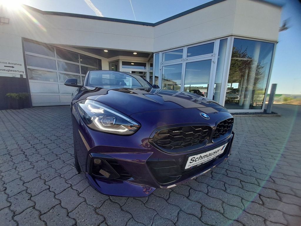 Dieser BMW Z4 M40i in auffälligem Metallic-Lila verbindet sportliche Fahrfreude mit umfangreicher Serienausstattung. Mit 340 PS, Hinterradantrieb und Automatikgetriebe mit Schaltwippen bietet das Fahrzeug ein direktes Fahrerlebnis. Erstmals 2019 eingeführt und hier als Erstzulassung 2024 mit nur einem Vorbesitzer und lückenloser Servicehistorie – ein gepflegtes Fahrzeug in nahezu Neuzustand.