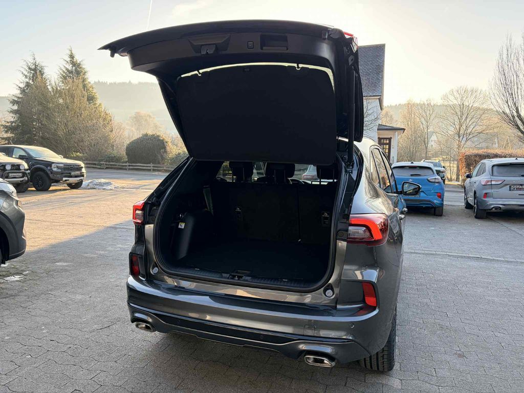 - Serienausstattung: 12-Volt-Anschluss; 360-Grad-Kamera; Airbags; Allradantrieb; Ambientebeleuchtung vorn; Anti-Blockier-System; Außenspiegel in Wagenfarbe lackiert; Body-Styling-Kit ST-Line; Bordcomputer; Bremsleuchte, dritte; Dachhimmel aus Webstoff, Schwarz; Dachreling; Dachspoiler, groß; Design-Paket ST-Line X; Diebstahlsicherung (Motorabschaltung); Drehzahlmesser; ESP und elektr. Bremskraftverstärker; Eco Coach; Electronic Shifter (Drehschalter); Fahrersitz 10-f.elektr.verst.; Fahrmodus-Schalter selektiver; Fahrspur-Assistent inkl. Fahrspurhalte-A; Fahrwerk: Fahrwerk, sportlich abgestimmt; Fensterheber elektrisch vorn und hinten; Feststellbremse, elektrisch mit Auto Hol; Ford Key Free-System inkl. Power-Startf.; Fußraumbeleuchtung vorn; Gepäckraumabdeckung, flexibel/abnehmbar; Geschwindigkeitsregelanlag intelligent,; Getriebe: stufenloses Automatikgetriebe; Heckklappe elektrisch, sensorgesteuert; Heckscheibe beheizbar; Heckscheibenwischer; ISOFIX-Halt. hin. an den äußeren Sitzp.; Induktive Ladestation für mobile Endgerä; Intelligenter Geschwindigkeitsbegrenzer; Klimaanlage mit aut. Temperaturkontrolle; Kopfstützen vorne und hinten (5) höhenv.; LED Rückleuchten; LED-Scheinwerfer; Lenkrad, ST-Line-Design; Make-up-Spiegel in Fahrer- und Beifahrer; Mittelarmlehne hinten mit zwei Becherha.; Mittelkonsole vorn; Müdigkeitswarner; Paket: Fahrerassistenz-P.(Automatikget.); Park-Pilot-System vorn und hinten; Pedalerie mit Aluminium-Auflage; Polster:Prem.Polst.Sensico Leder/Wildled; Pre-Collision-Assist; Radio: Ford SYNC 4 inkl. Ford Navigation; Radiozubehör: 5G Modem; Reifendruckkontrollsystem; Räder: Reifen-Repatur-Set; Rücksitzbank u.Lehne asym.get.umklappbar; Scheibenwischer mit Regensensor; Seitenscheiben u. Heckscheibe dun.getönt; Servolenkung; Sitze: Kartentasche an Fahrer- und Beifa; Sitze: Memory F.Sitzeinstell.&Außenspieg; Sitze: Vordersitze, beheizbar; Teppichfußmatten vorn/hinten,ST-Line; Toter-Winkel-Ass.m.Cross Traffic Alert; Tür-Kindersicherung, manuell; Türkantenschutz; USB Anschlüsse; Verglassung: Vordertüren mit Akustik-Ver; Verkehrsschild-Erkennungssystem inkl. Fa; Wegfahrsperre; Zierleisten Schwarz; eCall Notrufsystem;