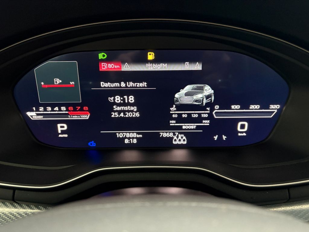 Sonderausstattung:Assistenz-Paket Fahren, Assistenz-Paket Parken, Audi connect (Internetbasierende Dienste), Audi connect Schlüssel, Bluetooth-Freisprecheinrichtung mit Spracherkennung (Audi Phone Box), Design-Paket: RS rot, Fahrassistenz-System: Anfahr-Assistent (hold assist), Fahrassistenz-System: Parklenkassistent, Head-up-Display, Höchstgeschwindigkeit 280 km/h, Infotainment-Paket, Kamerasystem Umgebungsansicht (Top View), Kombiinstrument digital (virtual cockpit plus), Komfort-Klimaautomatik 3-Zonen, Komfort-Paket RS, Komfortschlüssel mit sensorgesteuerter Heckklappenentriegelung inkl. (öffnen + schliessen), Kontur / Ambientebeleuchtungs-Paket (plus), LM-Felgen 9x20 (5-Arm-Flag-Design, Anthrazit-Schwarz glänzend, glanzgedreht), Matrix-LED-Scheinwerfer mit Laserlicht, Metallic-Lackierung, Multi-Media-Interface MMI Navigation Plus mit MMI Touch, Neuwagen-Reifengarantie, Optik-Paket Aluminium matt, Optik-Paket schwarz plus, Sound-System Bang & Olufsen, Verglasung hinten abgedunkelt (Privacyverglasung), Wärmeschutzverglasung mit Frontscheibenheizung (Dämmglas)