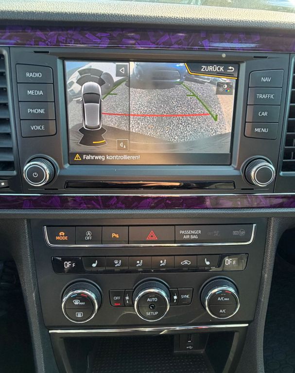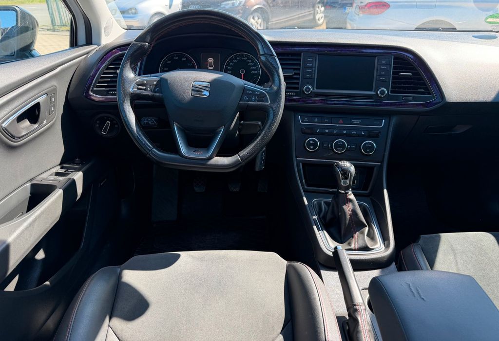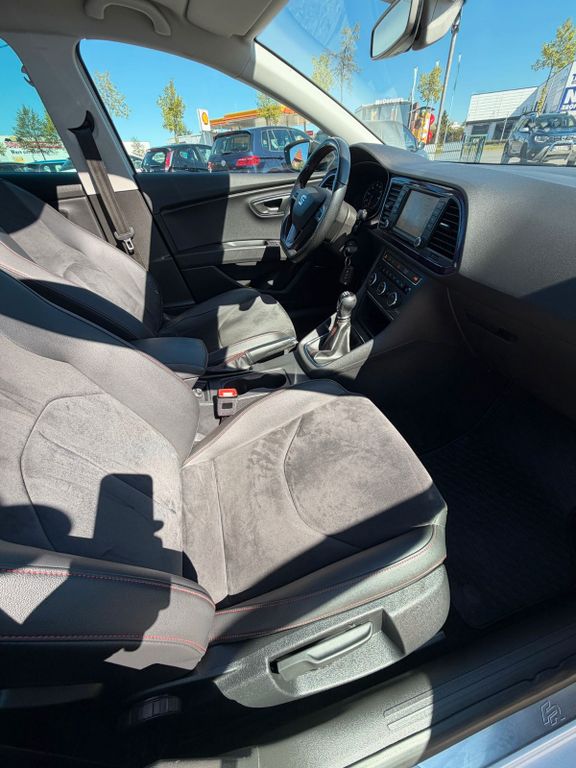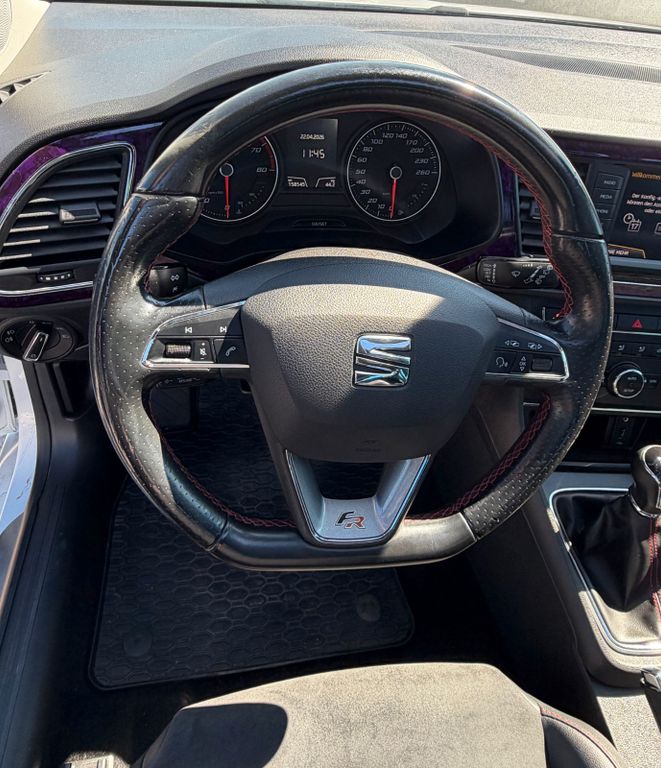 Ablagetasche an Vordersitzlehnen, Airbag Beifahrerseite abschaltbar, Airbag Fahrer-/Beifahrerseite, Antriebs-Schlupfregelung (ASR), Außenspiegel elektr. anklappbar, Außenspiegel elektr. verstell-, heiz- und anklappbar, beide, Außenspiegel mit Spiegelabsenkung, rechts, Außenspiegel und Türgriffe außen in Wagenfarbe, Außentemperaturanzeige, Blinkleuchten LED in Außenspiegel integriert, Bordcomputer, Bremsassistent, Elektron. Differentialsperre (EDS), Fahrassistenz-System: Berganfahr-Assistent (Hill-Holder), Fahrassistenz-System: Berganfahr-Assistent und Elektron. Differentialsperre, Fahrassistenz-System: Fahrprofilauswahl (SEAT Drive Profile), Fensterheber elektrisch hinten, Handschuhfach beleuchtet, Heckleuchten LED, Innenausstattung: Chrom-Applikationen, Isofix-Aufnahmen für Kindersitz, Karosserie: 5-türig, Klimaanlage Climatronic 2-Zonen, Knieairbag Fahrerseite, Kopf-Airbag-System, Kopfstützen hinten (3-fach), Kopfstützen vorn verstellbar, Lendenwirbelstütze Sitz vorn links, verstellbar, Lendenwirbelstütze Sitz vorn rechts, verstellbar, Lenkrad (Sport/Leder), Mittelkonsole vorn mit Mittelarmlehne, Becherhalter, Ablagebox und Luftdüsen hinten, Motor 1,8 Ltr. - 132 kW 16V TSI, Reifenkontroll-Anzeige, Rücksitzlehne geteilt/klappbar (1/3-2/3), Schadstoffarm nach Abgasnorm Euro 6, Schalt-/Wählhebelgriff Leder, Seitenairbag, Seitenscheiben hinten und Heckscheibe abgedunkelt, Sitz vorn links höhenverstellbar, Sitz vorn rechts höhenverstellbar, Sonnenblende links mit Spiegel (beleuchtet), Sonnenblende rechts mit Spiegel (beleuchtet), Sport-Fahrwerk FR / Cupra, Sportsitze vorn, Sprachsteuerungs-System, Start/Stop-Anlage, Stau-/Ablagefach unter Sitze vorn, Steckdose (12V-Anschluß) vorn, Stoßfänger lackiert, Wärmeschutzverglasung